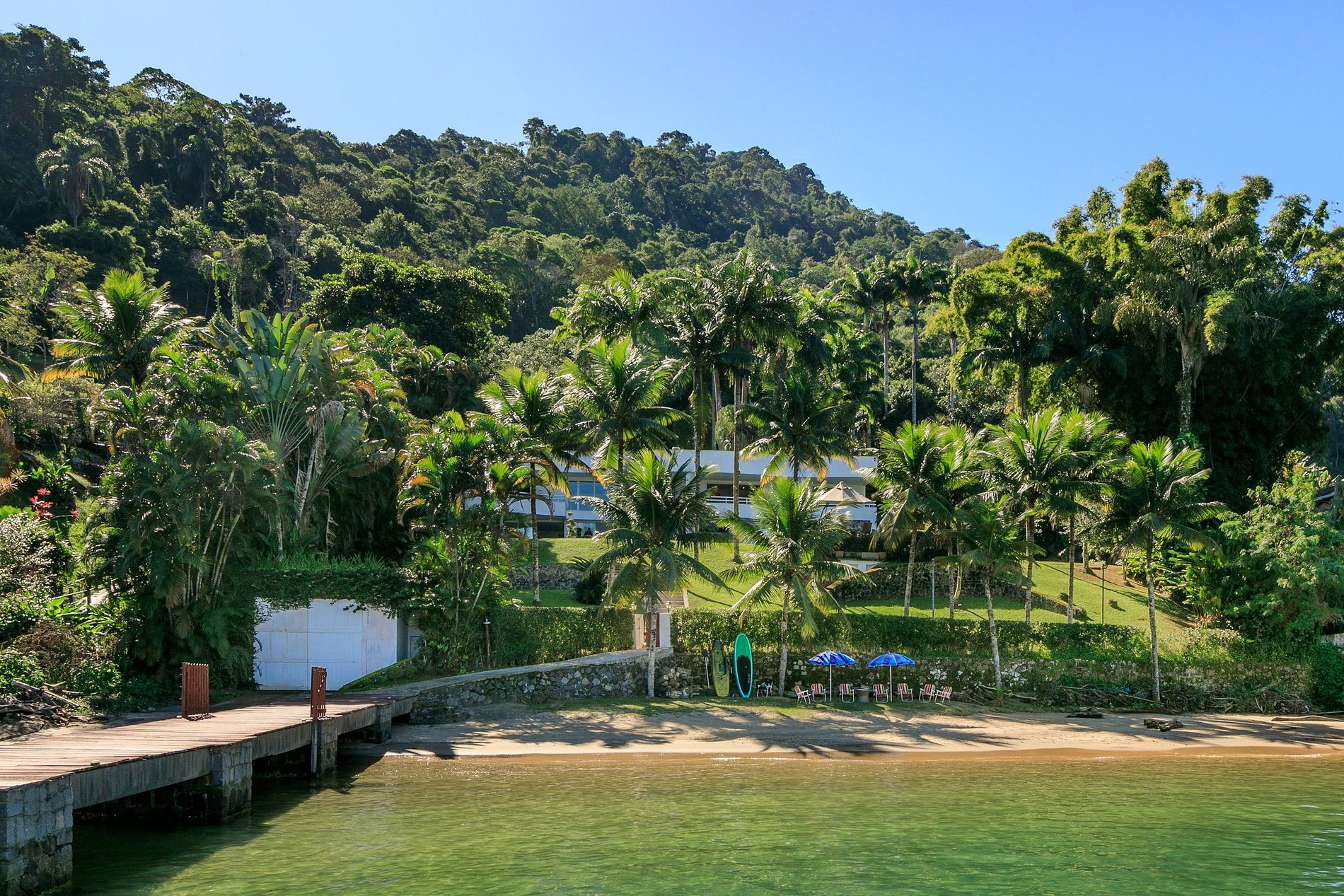 A soli dieci minuti dall'iconica Spiaggia Dentista, questa splendida villa incanta con la sua architettura elegante e fluida. Su due piani, la proprietà vanta otto ampie camere che possono ospitare comodamente fino a 20 persone. Immersa nel verde lussureggiante e tra maestose palme, la tenuta offre una grande piscina, sauna, doccia esterna, eliporto e un molo privato adatto a barche fino a 150 piedi.