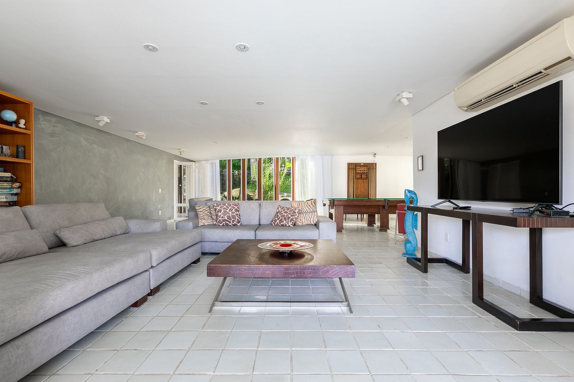 All'interno, la villa è progettata per offrire tutto ciò di cui si ha bisogno per un soggiorno eccezionale. Al piano terra si trovano un ampio soggiorno, bar, sala TV, sala da pranzo, sala giochi, due cucine completamente attrezzate, un bagno per gli ospiti e una suite. Al primo piano ci sono la suite padronale, altre quattro suite e due camere aggiuntive che condividono un bagno esterno.