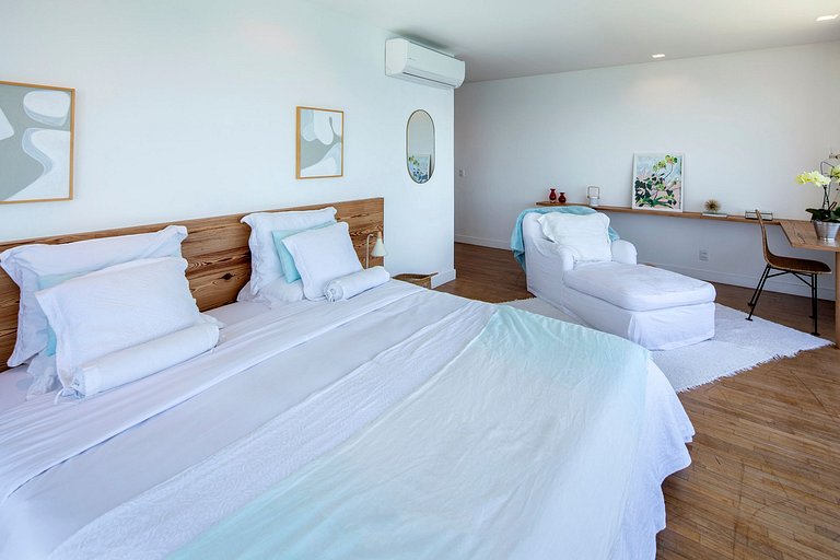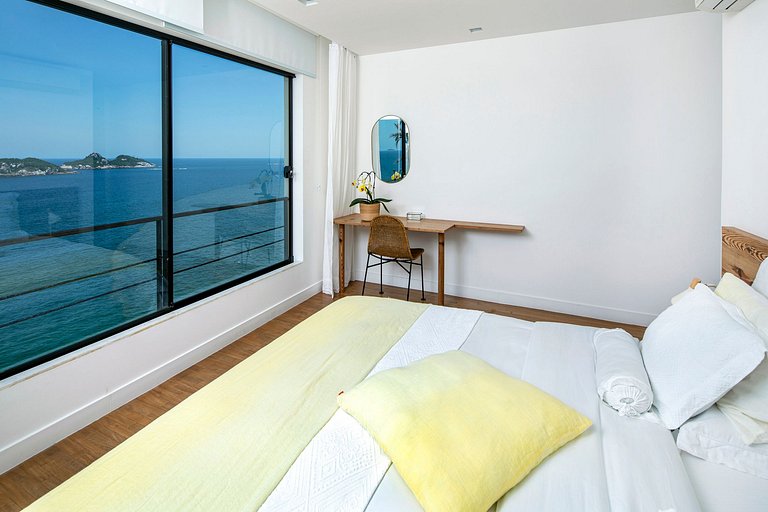 Ci sono tre eccellenti suite con letto king size con vista mozzafiato sul mare. E' inoltre presente una camera di appoggio con due letti singoli la cui standard può essere trasformata in letto matrimoniale. Tutte le camere sono complete, attrezzate e dotate di comfort di fascia alta come cuscini Zissou, lenzuola con fili di bambù, accappatoi e asciugamani in cotone egiziano, tende di lino, TV con canali via cavo e Netflix e viste impareggiabili sulle isole Tijuca e Cagarras.