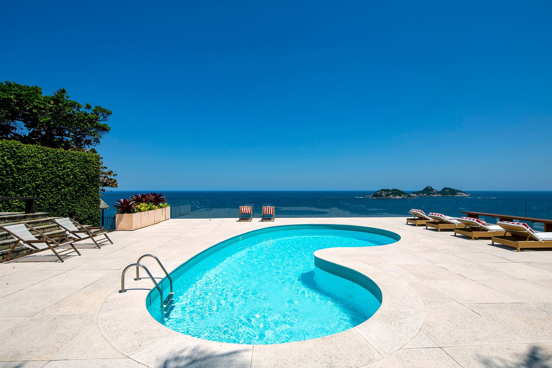 Ci sono tre eccellenti suite con letto king size con vista mozzafiato sul mare. E' inoltre presente una camera di appoggio con due letti singoli la cui standard può essere trasformata in letto matrimoniale. Tutte le camere sono complete, attrezzate e dotate di comfort di fascia alta come cuscini Zissou, lenzuola con fili di bambù, accappatoi e asciugamani in cotone egiziano, tende di lino, TV con canali via cavo e Netflix e viste impareggiabili sulle isole Tijuca e Cagarras.