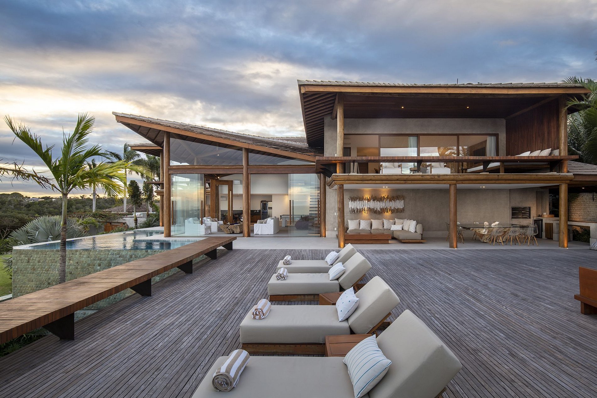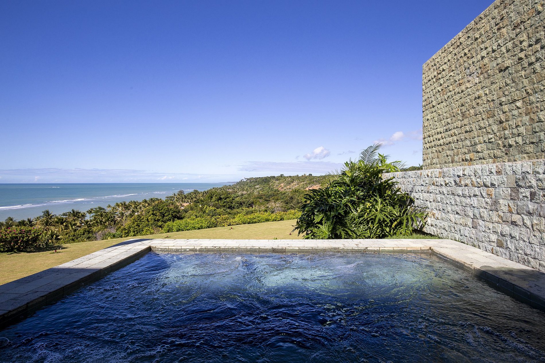 Dall'alto di una scogliera, la città impressiona. Il mare, la natura e la brezza bahiana cullano ogni angolo del sontuoso e imponente progetto architettonico. L'ambiente della spiaggia acquista raffinatezza con l'architettura contemporanea e finiture di ottima qualità. Nella decorazione è forte la presenza del contrasto tra il bianco e il legno nelle sue più svariate presentazioni. Le enormi vetrate che circondano la casa permettono alla luce e al paesaggio cinematografico di incorniciare tutte le stanze. E quando scende la notte, il progetto luci rende l'atmosfera semplicemente magica.