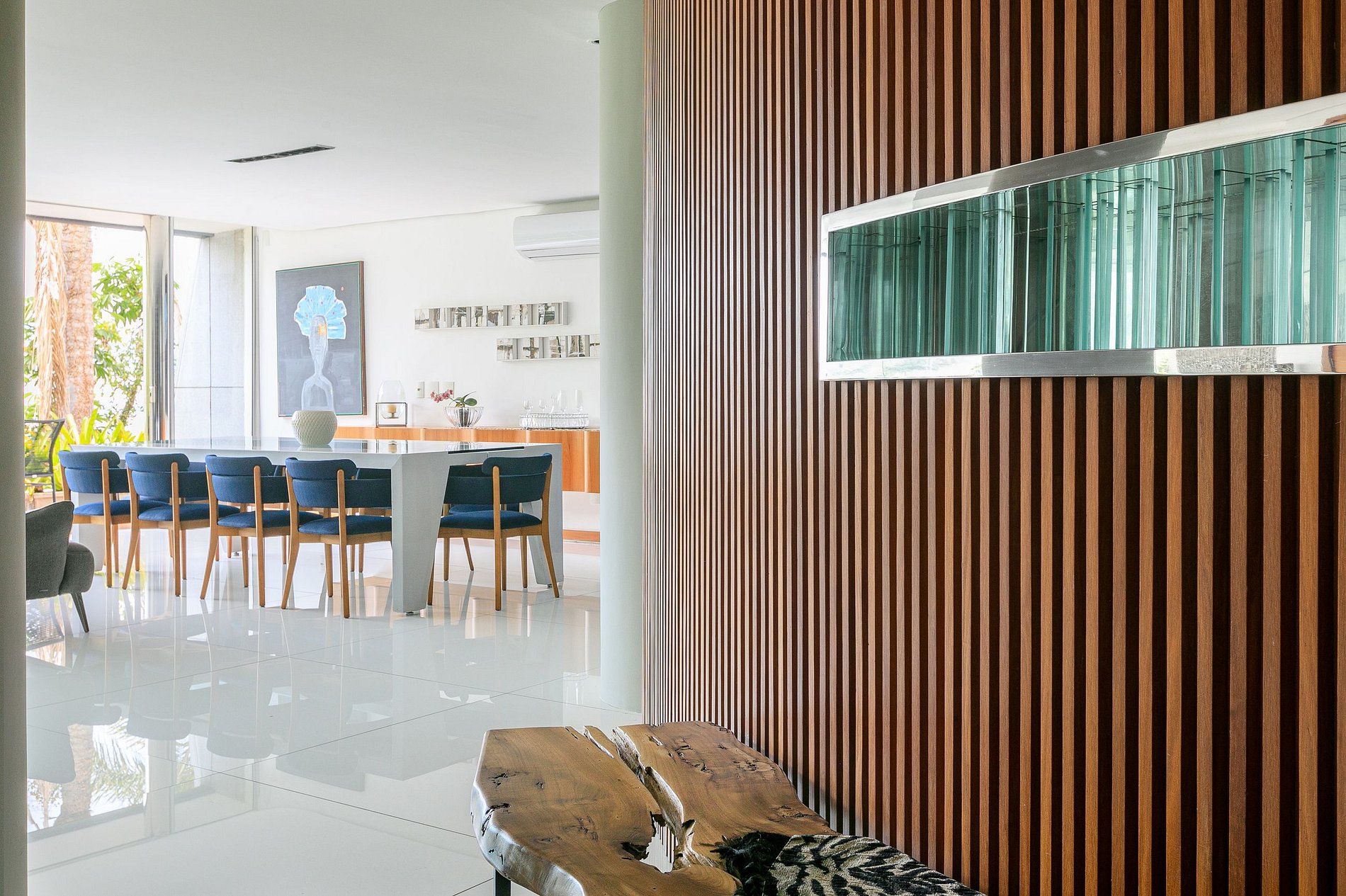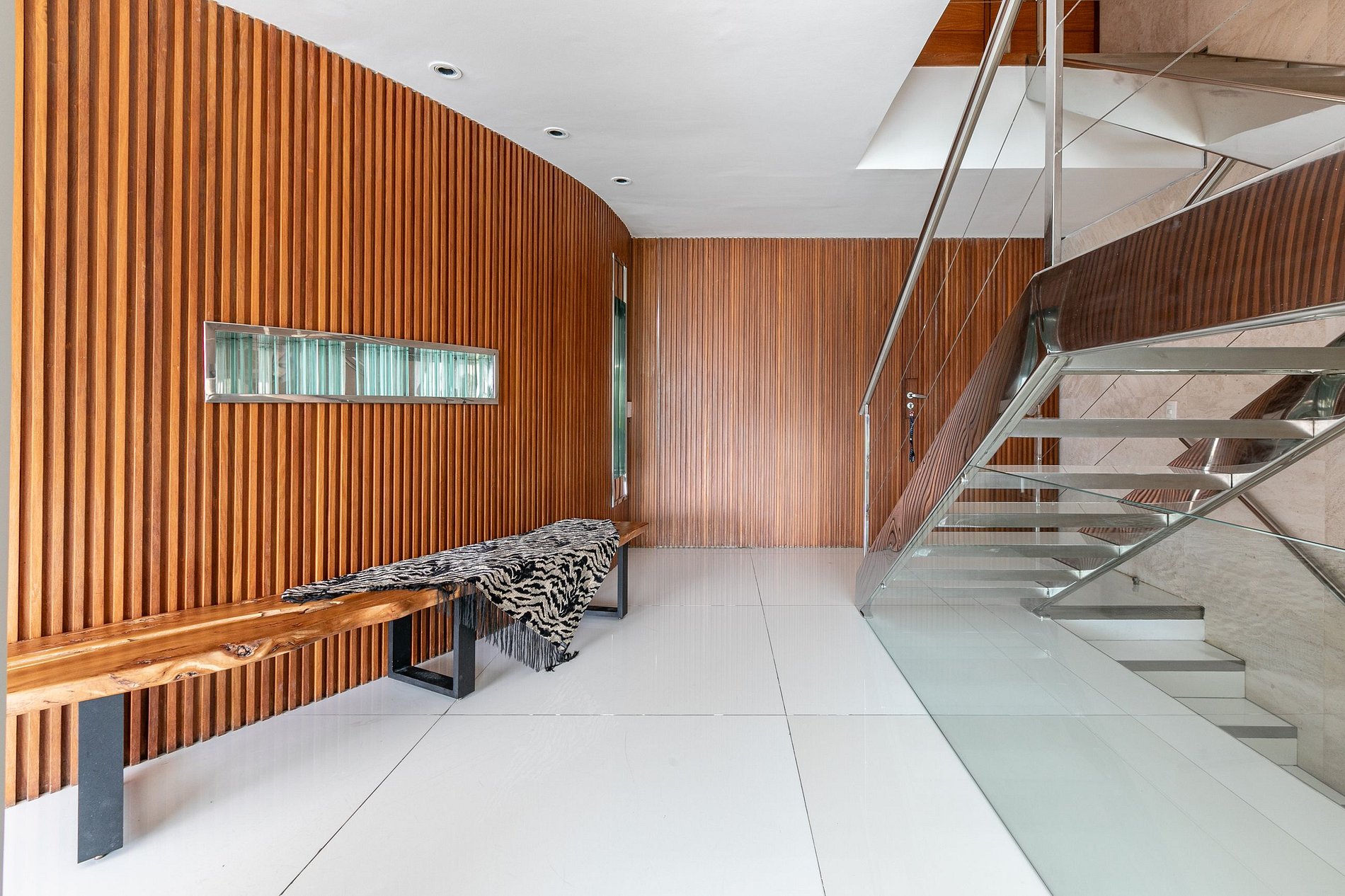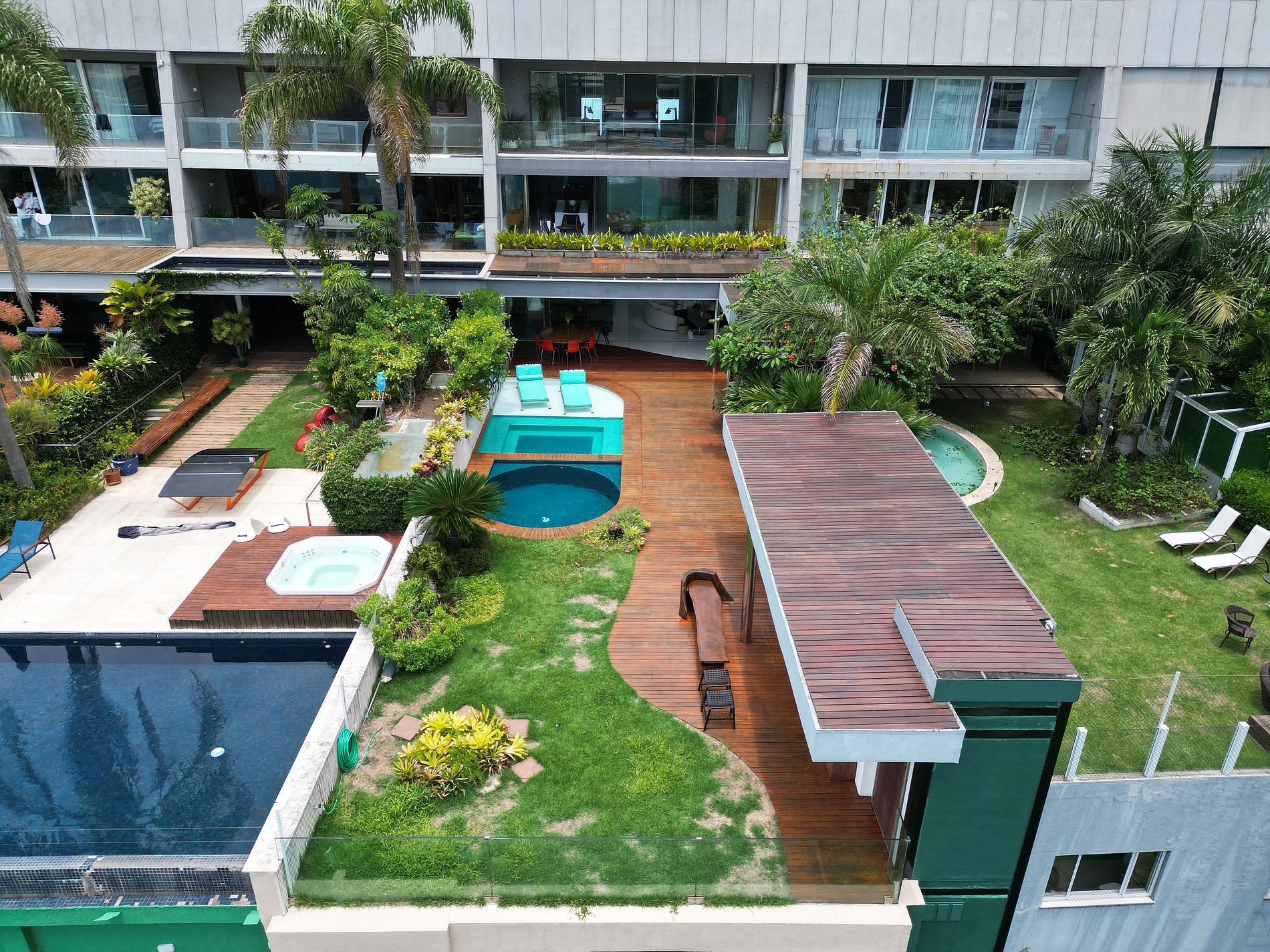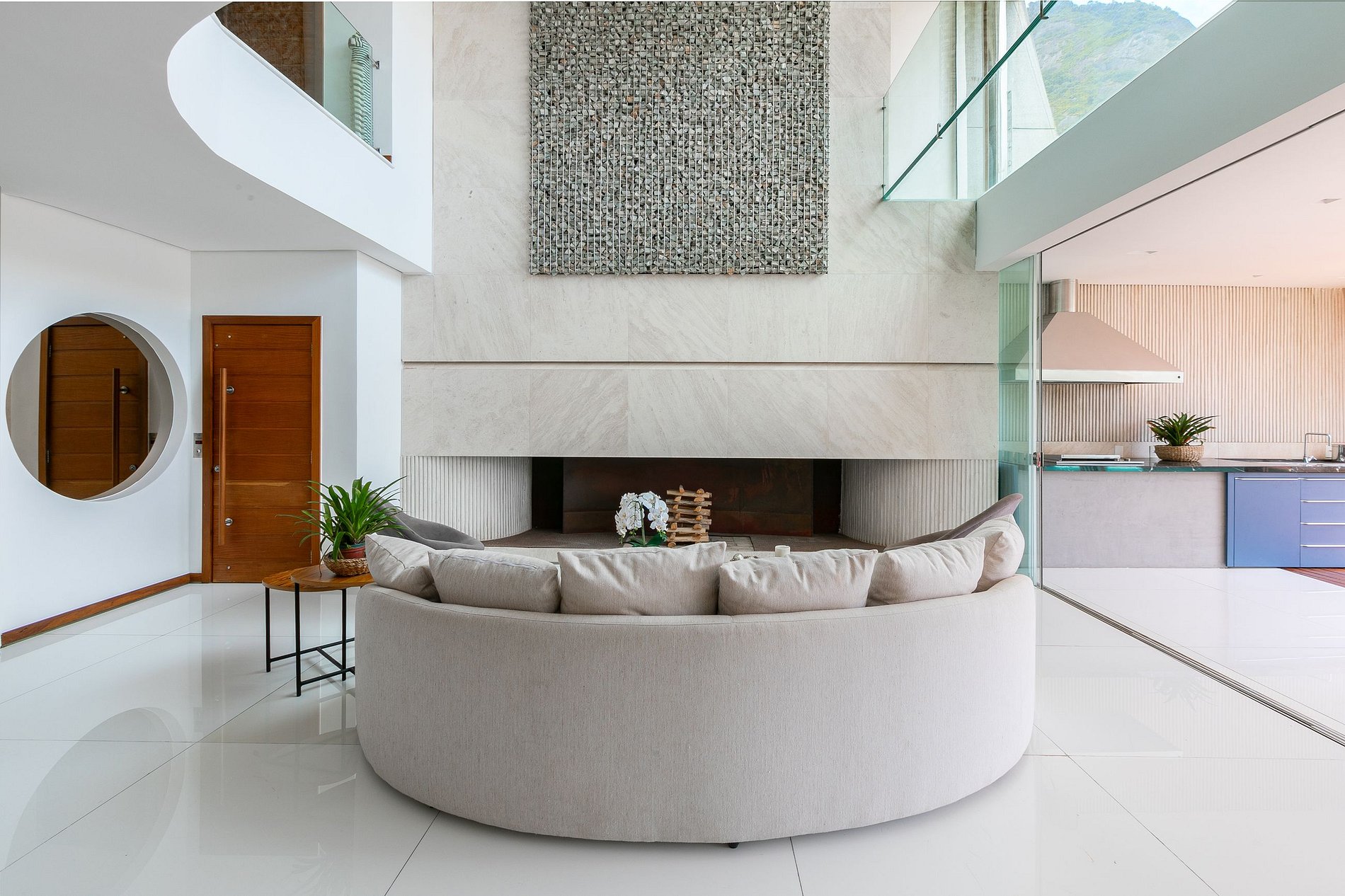 Il corpo principale comprende la suite principale, insieme a una serie di spazi sociali e ricreativi. Il magnifico salone è adornato con opere d'arte e la sala cinema privata è dotata di tecnologia all'avanguardia per un'esperienza di intrattenimento senza pari. L'accesso all'ascensore consente un movimento fluido tra le camere e le loro viste mozzafiato di Rio de Janeiro.
