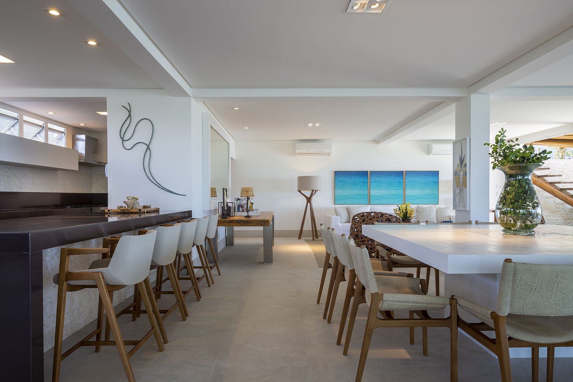 Da queste parti i divertimenti ei momenti di fraternizzazione tra le persone più care sono innumerevoli. Lo spazio gourmet ha una griglia e un forno per la pizza e tutti possono riunirsi attorno al grande tavolo in legno locale per 16 persone. La cucina è dotata di cantinetta per 96 bottiglie, refrigeratore per birra, congelatore verticale e orizzontale, piano cottura industriale, due frigoriferi, fabbricatore di ghiaccio e set da tavola.