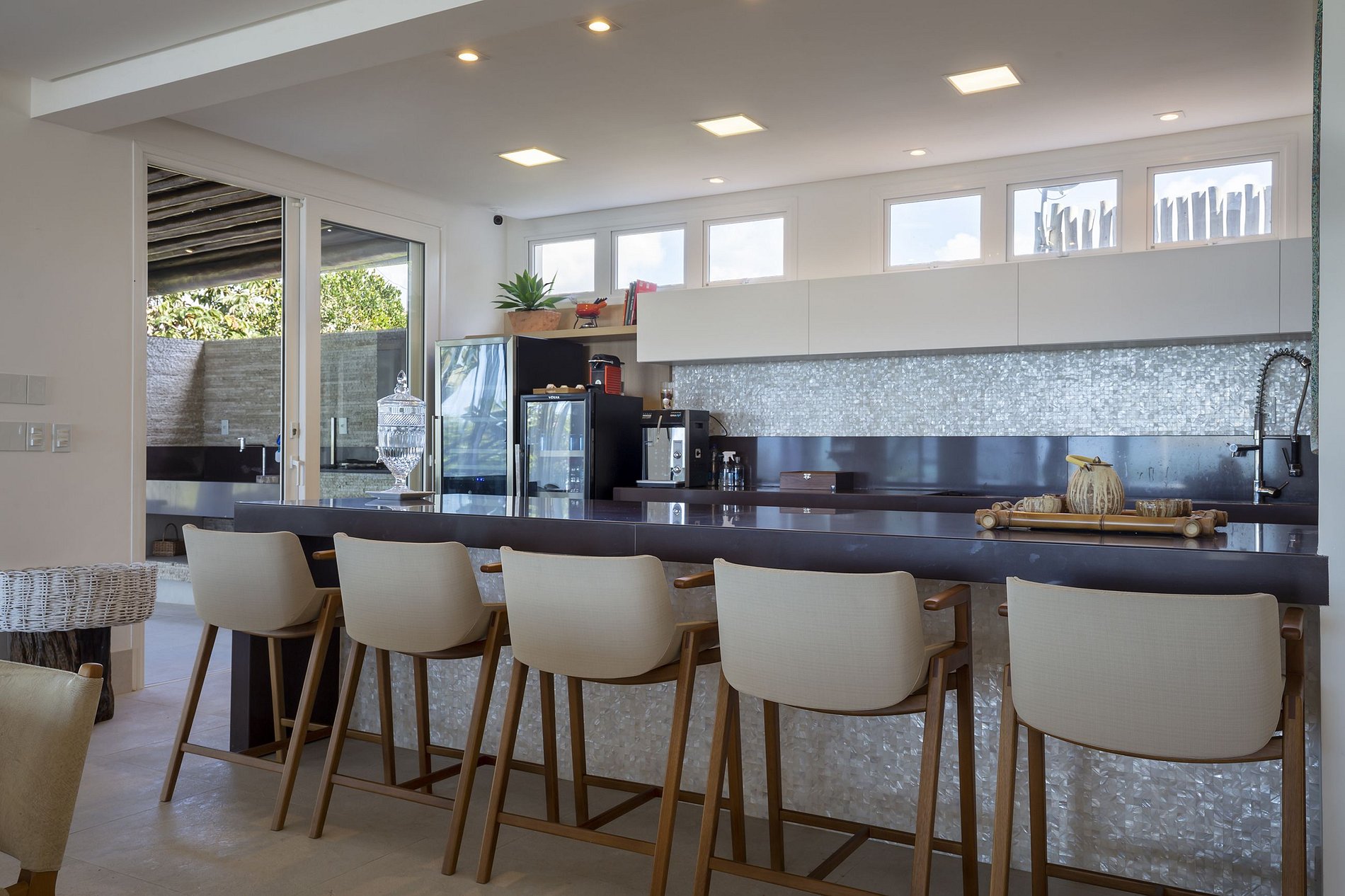 Da queste parti i divertimenti ei momenti di fraternizzazione tra le persone più care sono innumerevoli. Lo spazio gourmet ha una griglia e un forno per la pizza e tutti possono riunirsi attorno al grande tavolo in legno locale per 16 persone. La cucina è dotata di cantinetta per 96 bottiglie, refrigeratore per birra, congelatore verticale e orizzontale, piano cottura industriale, due frigoriferi, fabbricatore di ghiaccio e set da tavola.