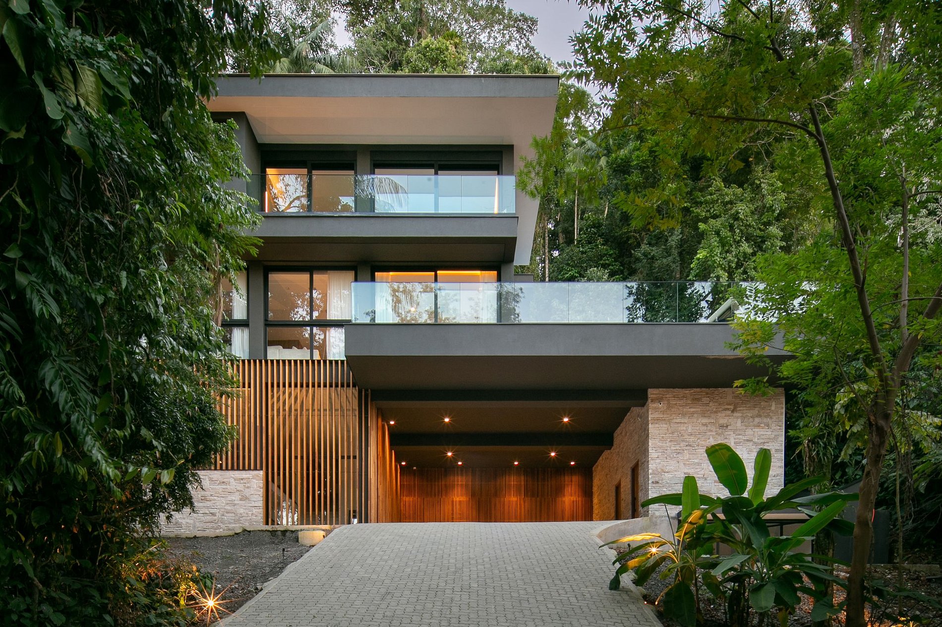 Situata in una regione tranquilla e sicura di Guarujá, questa casa è una vera oasi di tranquillità. Con un'architettura moderna e audace, la casa risalta in mezzo al verde della natura circostante, creando un contrasto armonioso e gradevole alla vista.