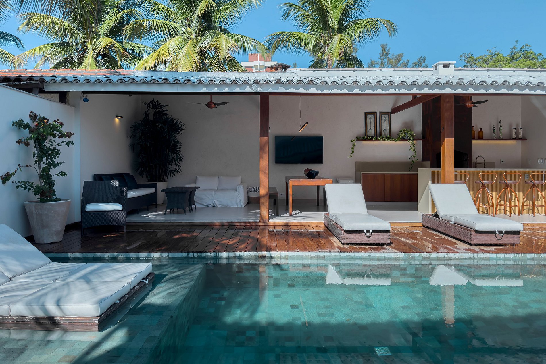 La casa invita al benessere con un soggiorno spazioso, integrato con l’area ricreativa, dove si trova una piscina circondata da un rigoglioso giardino. Lo spazio gourmet, coperto e attrezzato con barbecue, microonde e congelatore, è ideale per accogliere gli ospiti. Inoltre, dispone di una sauna, due bagni esterni e un affascinante terrazzo che offre il contesto perfetto per cene all’aperto.