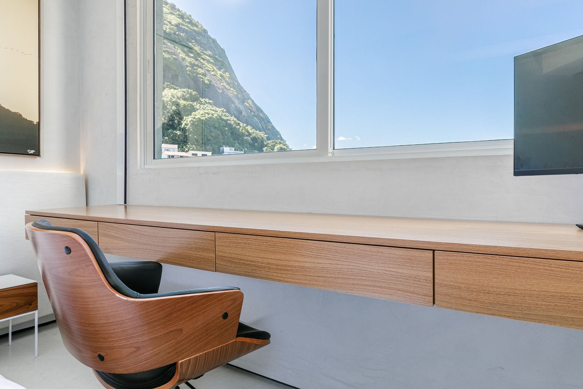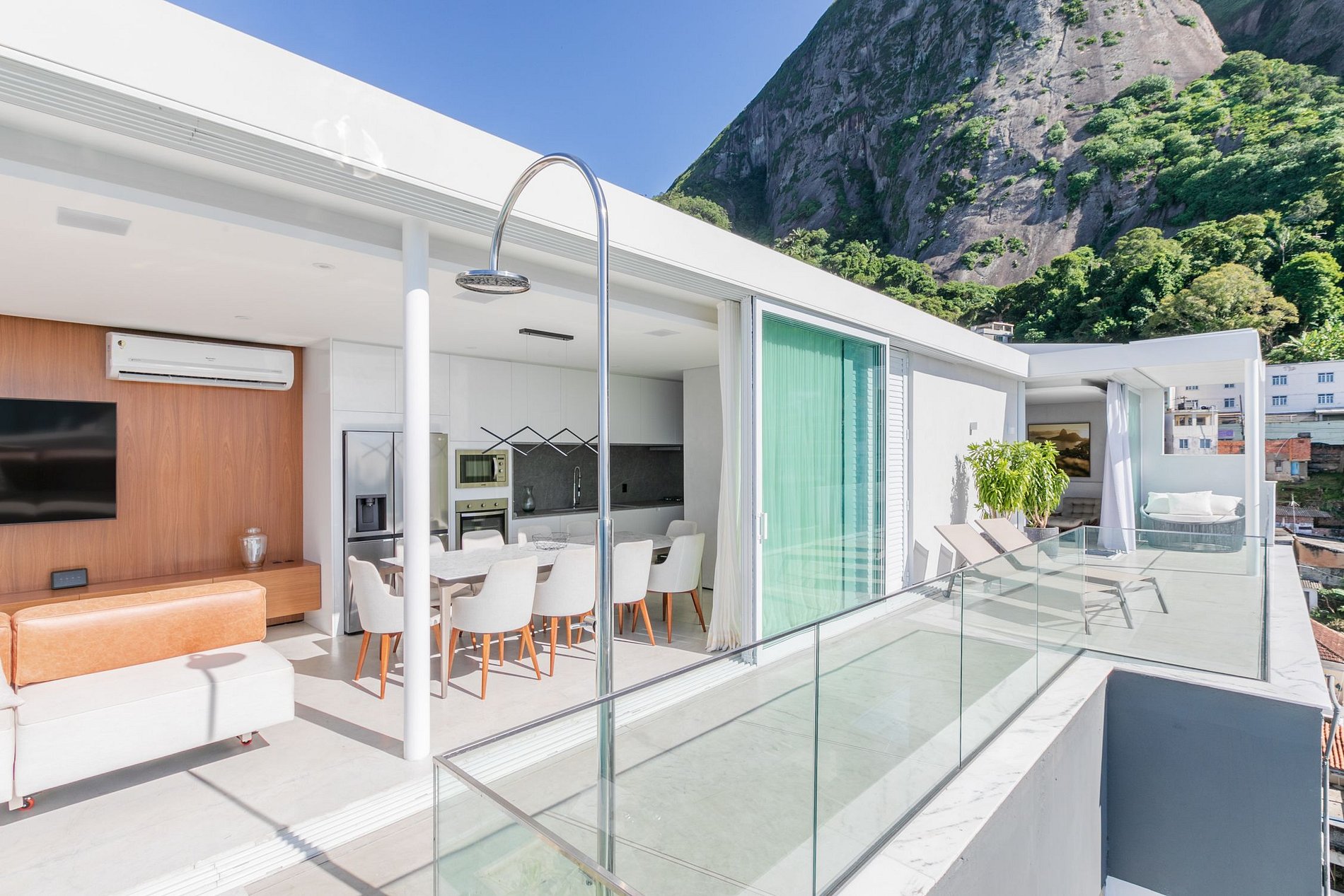 Ammirare l'alba da questo attico è un'esperienza straordinaria e indimenticabile. La vista mozzafiato che si apre appena si entra in questo duplex di 241 m² è straordinaria, anche per molti carioca. Questo da solo basterebbe a considerarlo una perla del nostro portfolio, nascosta nel Morro do Vidigal, ma l'attico ha ancora molto da offrire.