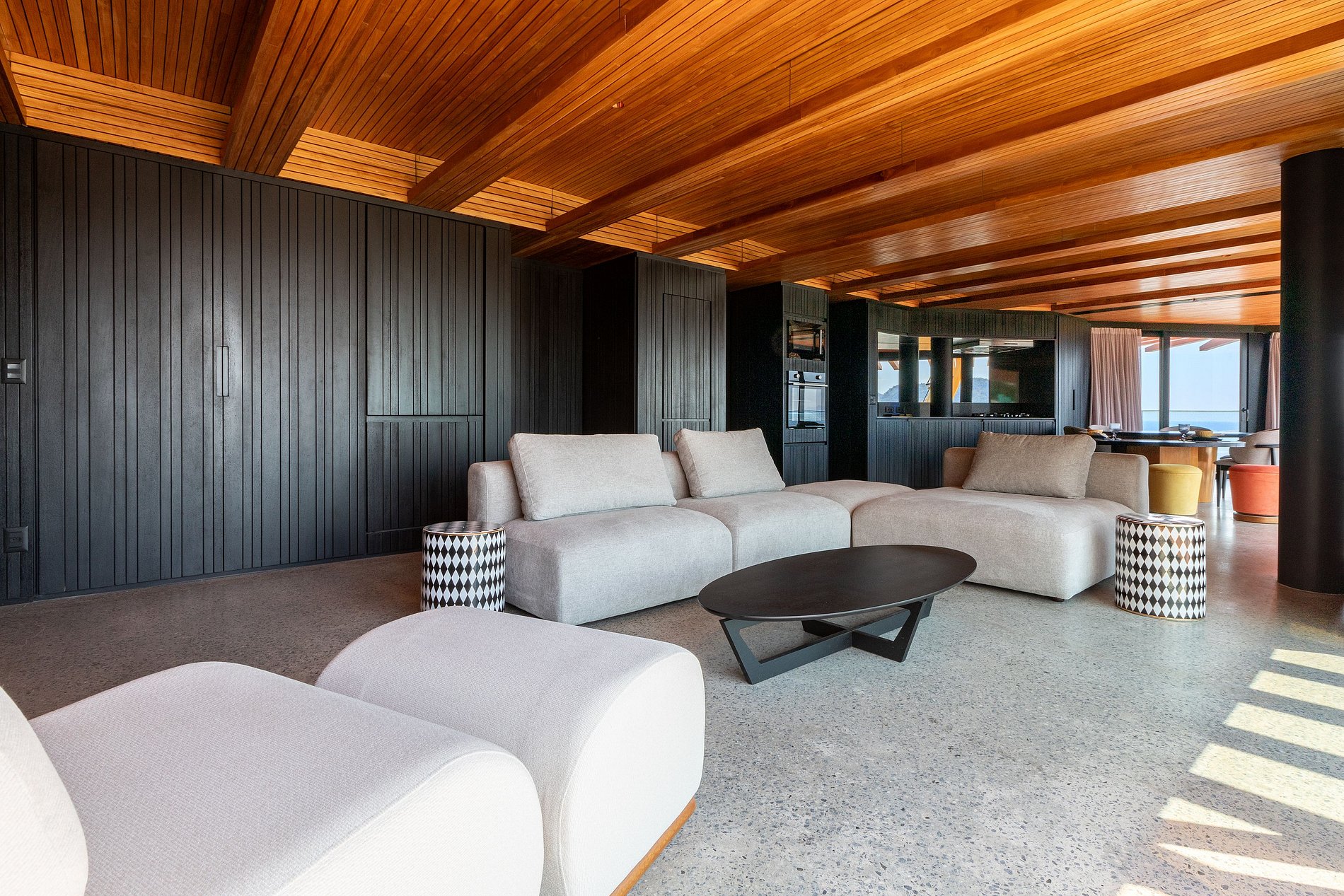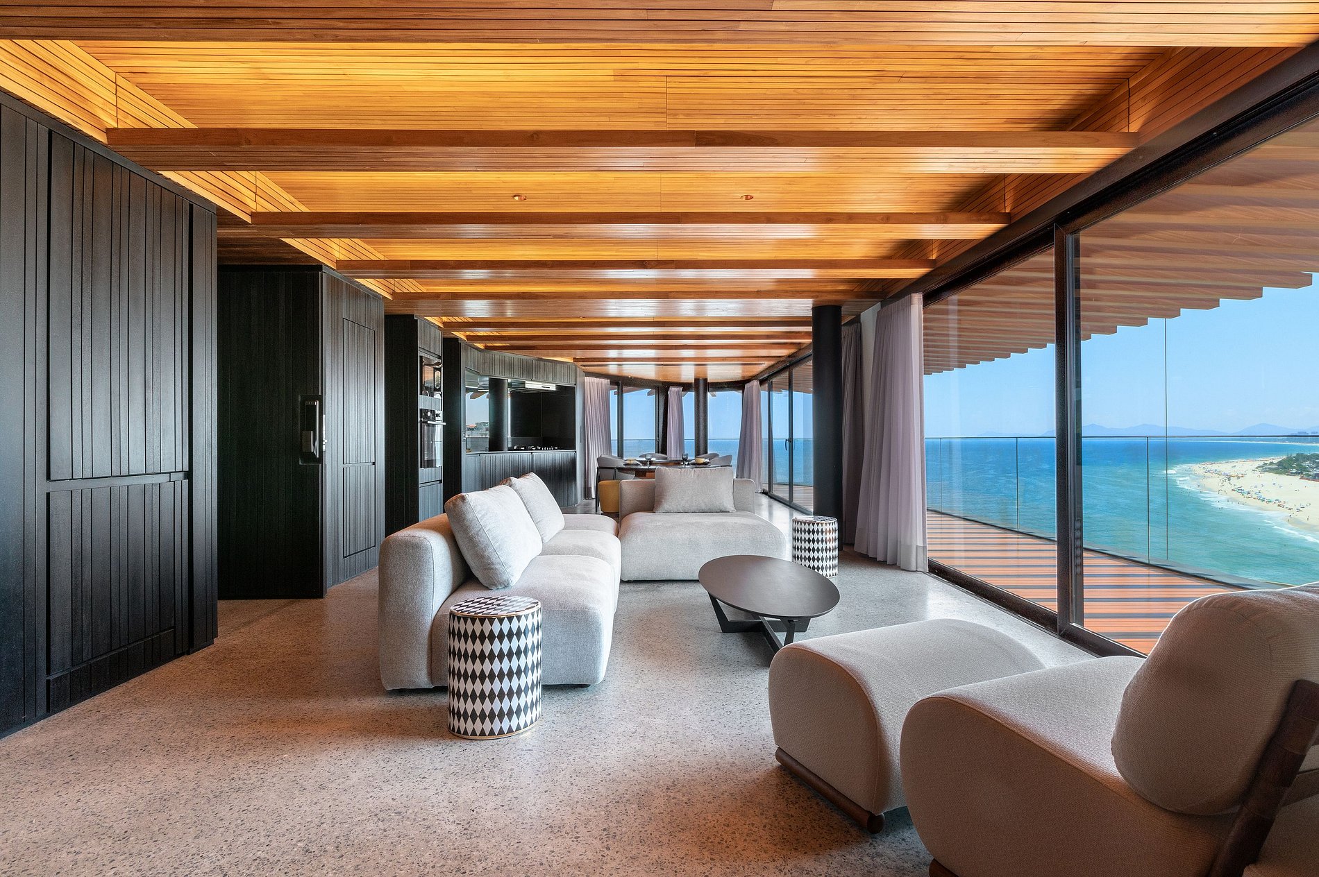 Il design degli interni segue l’estetica del "quiet luxury", con arredi scelti con cura per creare un ambiente sofisticato e accogliente. Il gioco di luce naturale trasforma gli spazi durante il giorno, avvolgendo le stanze con tonalità dorate all’alba e sfumature intense di rosso, arancione e lilla al tramonto. Questa danza di colori, armonizzata con i principi del Feng Shui, amplifica l’energia positiva e il benessere degli ospiti e residenti.
