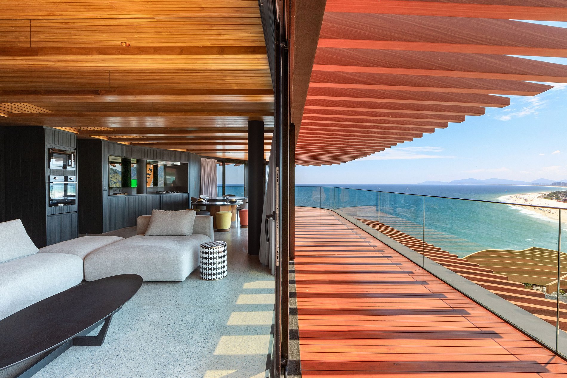 Ispirata alla sensazione di un grande transatlantico che fluttua sul mare, la proprietà colpisce per le sue ampie terrazze e gli spazi vetrati che catturano l’immensità dell’orizzonte. Il suggestivo scenario di Joatinga, con le sue acque cristalline e le scogliere imponenti, si apre davanti agli occhi, mentre gli sport acquatici e la natura circostante arricchiscono lo spettacolo quotidiano di questa posizione privilegiata.