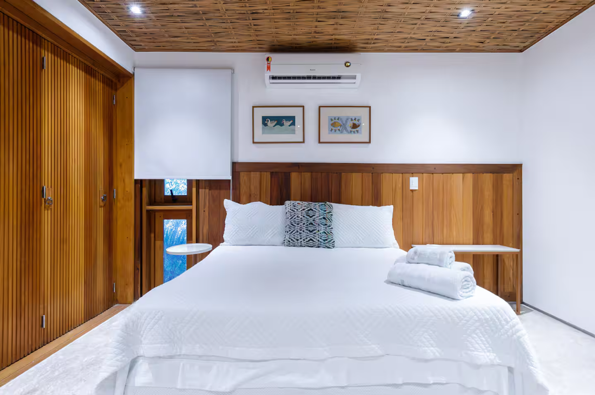 Situata nel rinomato condominio Enseada do Castelo, a solo 1 km dalla Villa, vicino al Progetto Tamar e alla Chiesa di San Francesco d’Assisi, la casa dispone di Wi-Fi, TV smart, biancheria da letto e bagno, frigo per birra, cantina, cucina completa e servizio di manutenzione piscina incluso. Il condominio offre accesso diretto alla spiaggia, attività acquatiche, parco giochi, palestra, pista ciclabile e sicurezza 24 ore.