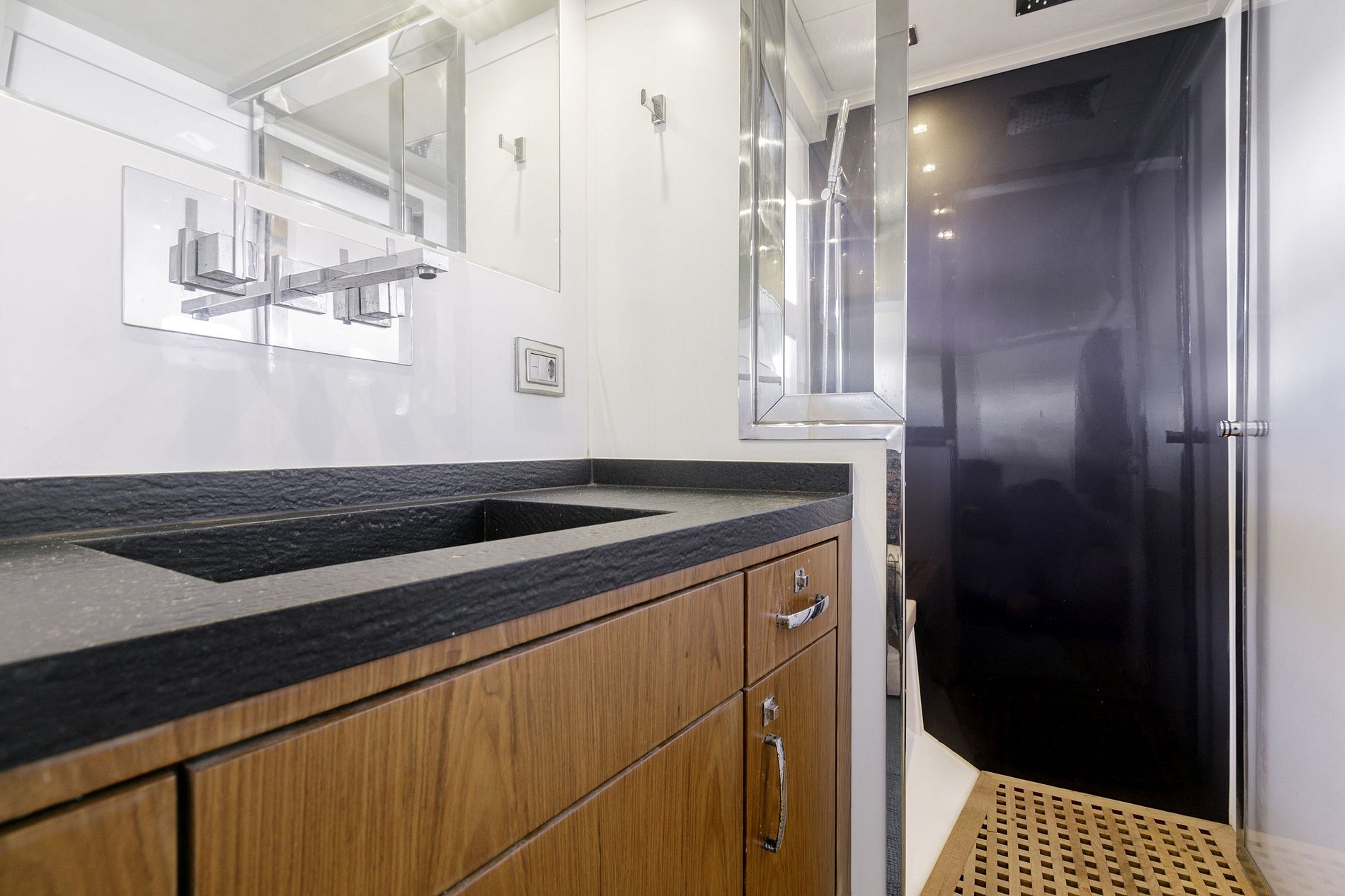 Il soggiorno è spazioso con due comodi divani e sia nelle camere da letto che nel soggiorno sono presenti degli armadi per riporre comodamente gli oggetti. Il motoscafo è inoltre dotato di un generatore da 20 kW, che fornisce energia indipendente a tutti gli ambienti.