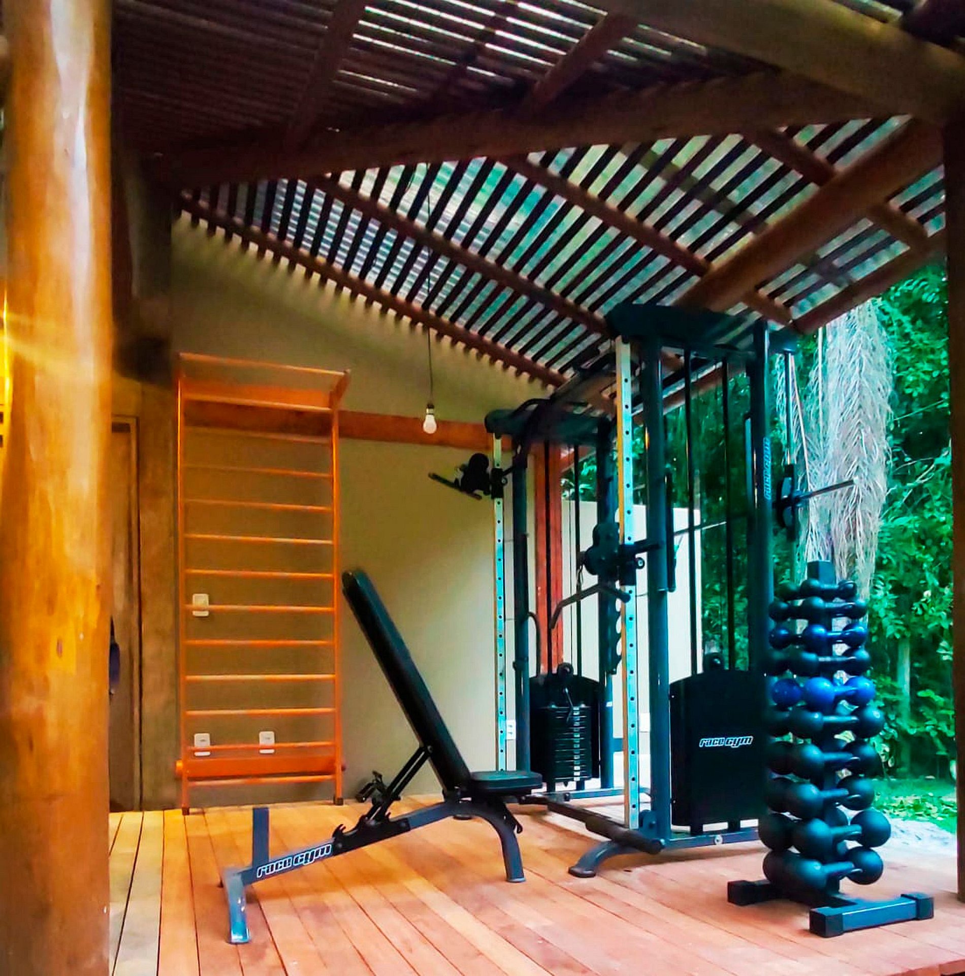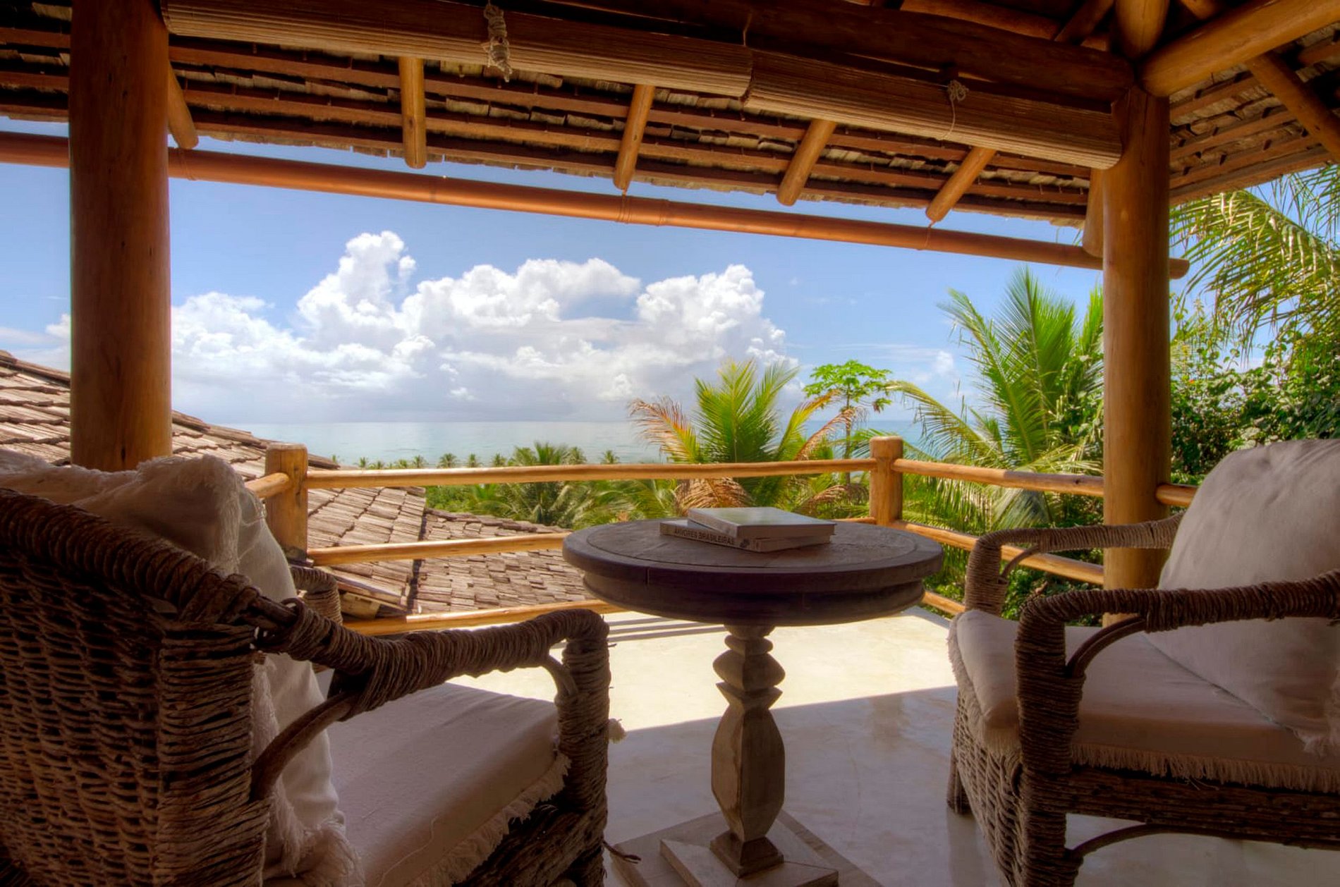 Suíte 6: Cama de casal, ar condicionado, mosquiteiro, amplo deque com vista para o mar e o jardim, acesso independente.