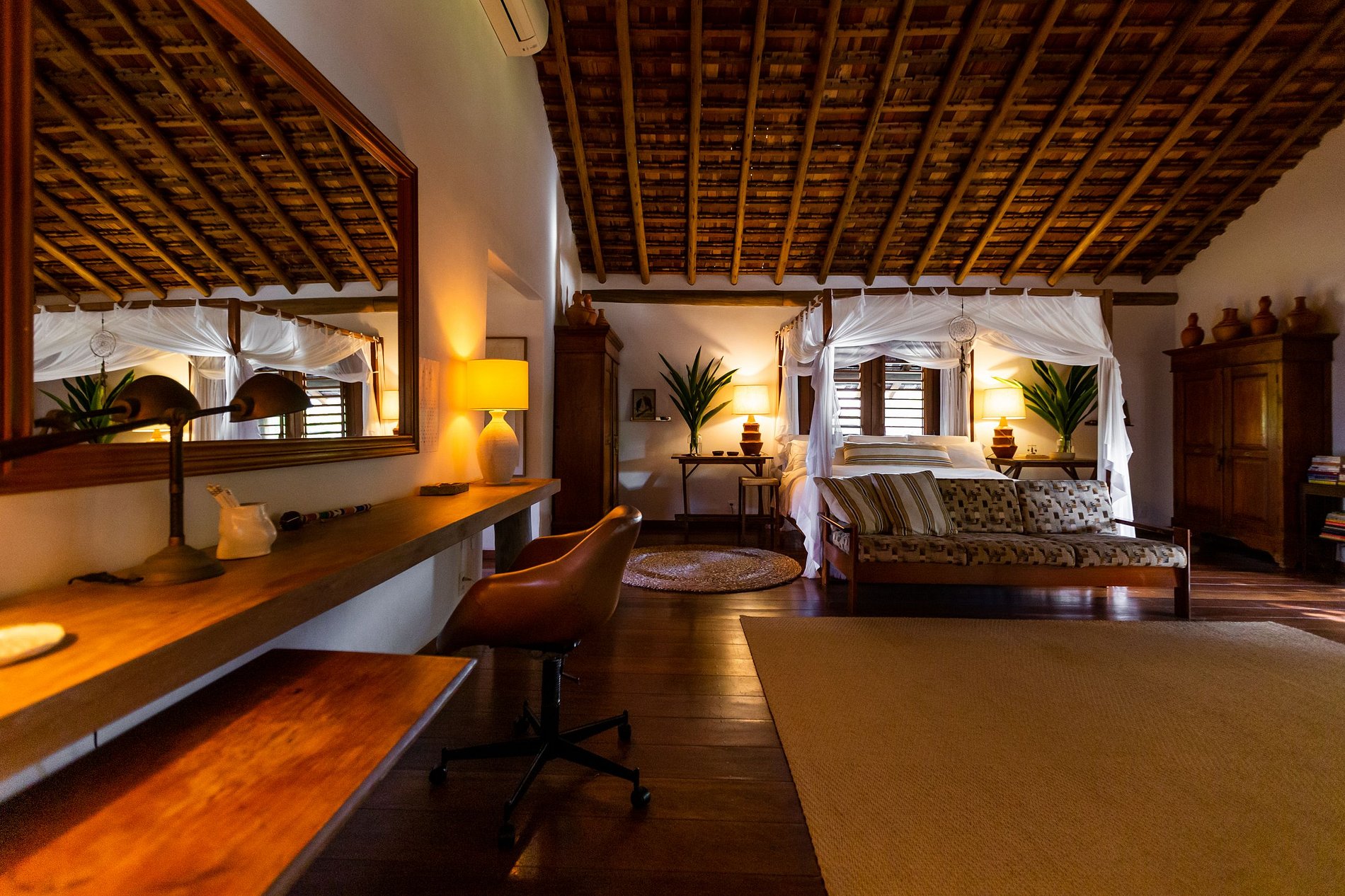 Todos os ambientes foram cuidadosamente planejados para integrar a natureza com o estilo local, misturando artesanato regional com peças trazidas de várias partes do mundo. Os espaços são amplos, arejados e ideais tanto para o descanso quanto para momentos de celebração com amigos ou família.
