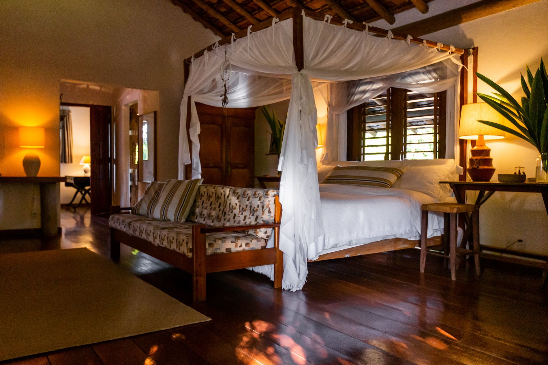 O serviço da casa é um capítulo à parte: com uma equipe completa formada por gerente, cozinheira, ajudantes, arrumadeiras e barman, você terá apoio de excelência durante toda a estadia. Detalhes como mosquiteiros, ar-condicionado, máquina de gelo, som ambiente, Wi-Fi de alta velocidade e enxoval Trousseau completam essa experiência de luxo única em Trancoso.