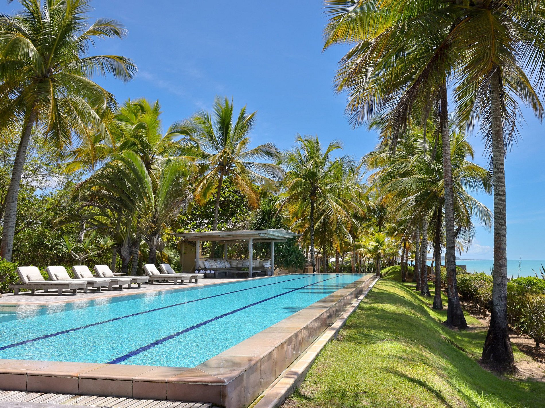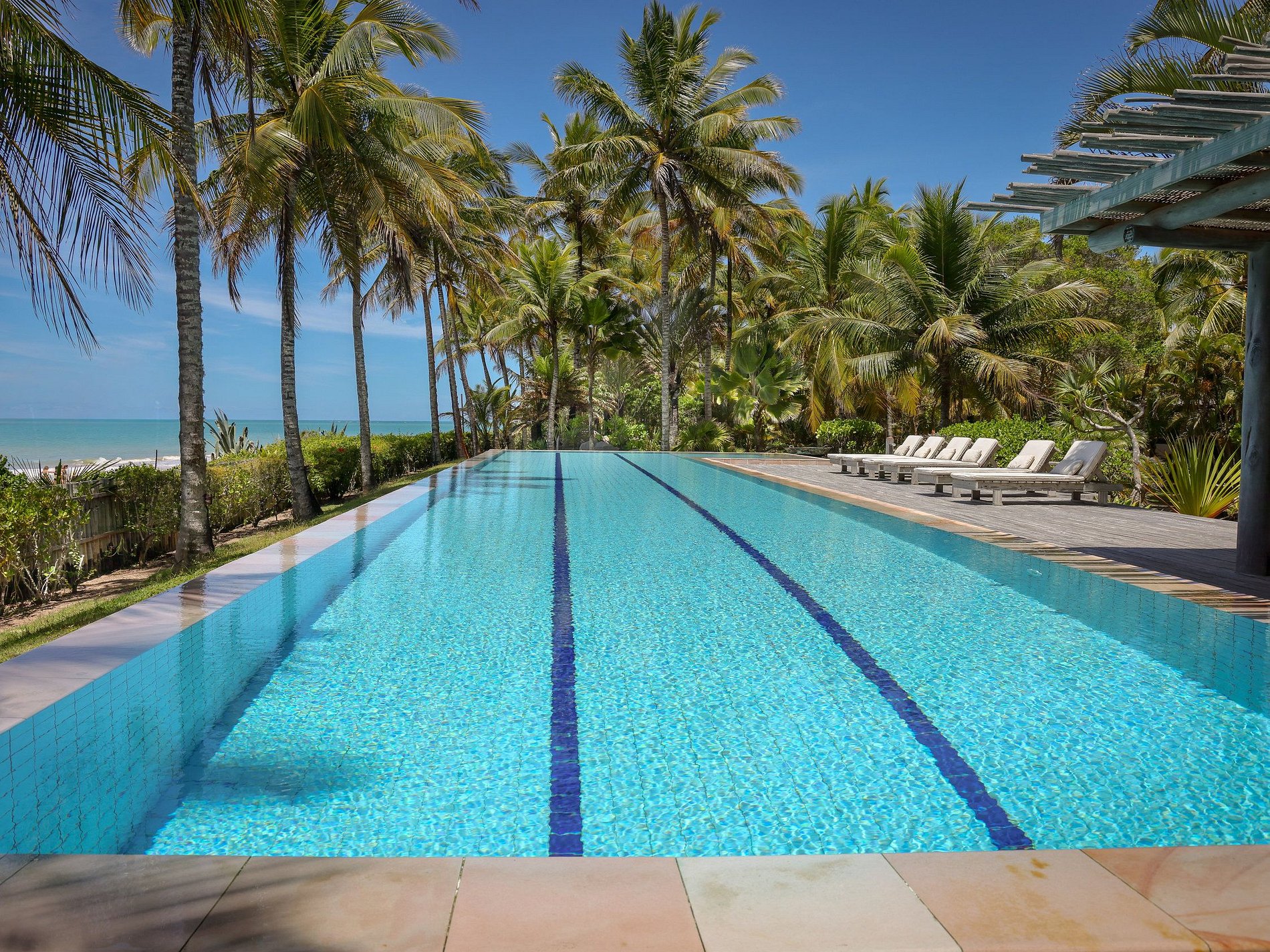 Localizada em uma propriedade de 37.000 m² com 800 metros de área construída, a vila possui 5 suítes com um total de 7 camas (3 Kings + 4 Solteiros). A residência inclui uma piscina, área de estar e suítes com vistas panorâmicas para o mar.