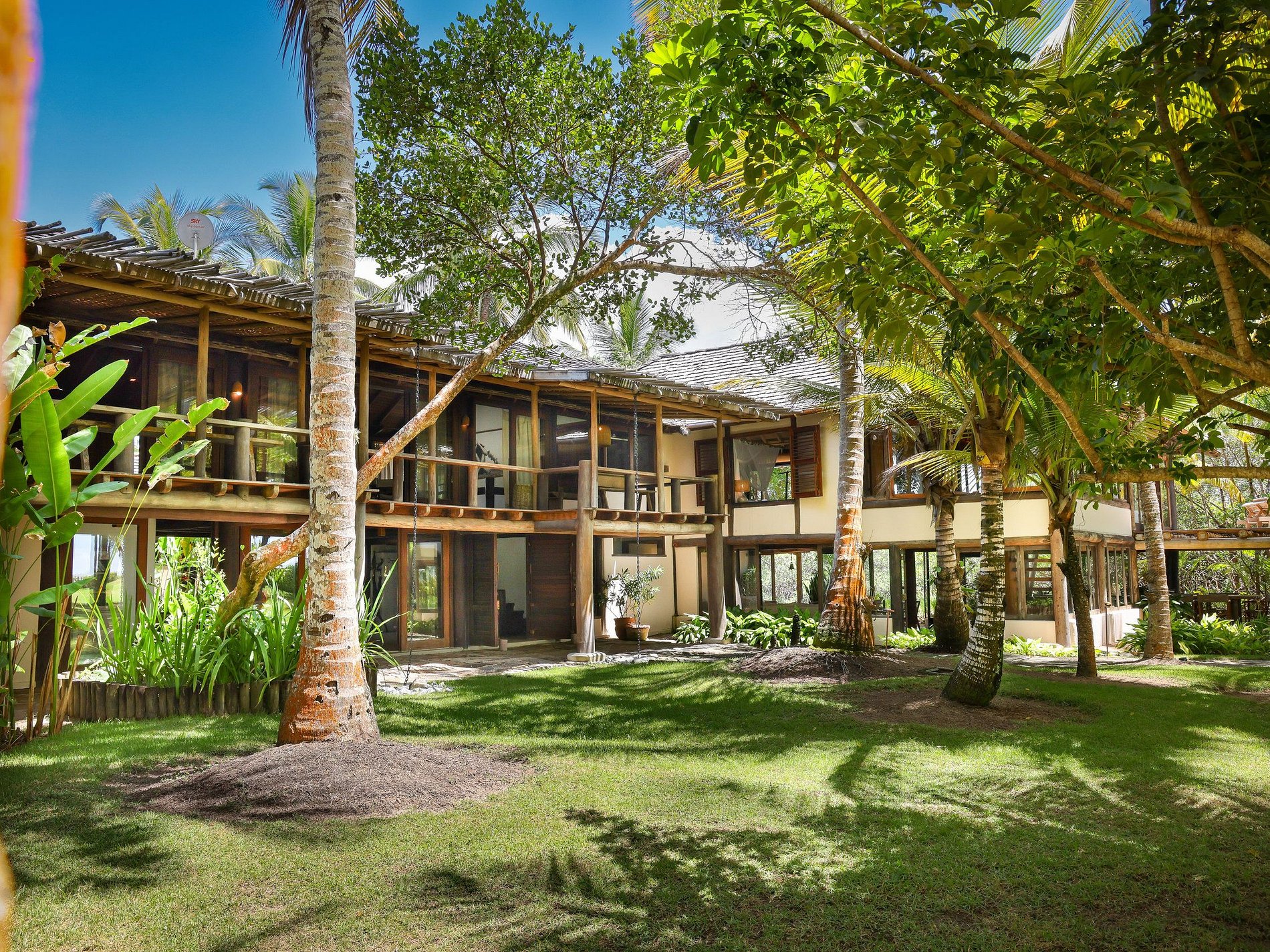 Outras suítes incluem a Suíte Jardim com vista para o mar, Suíte Térrea Jardim com vista para o jardim e Suíte Praia com vista para o mar. A propriedade também possui uma academia com vista para o mar, garagem para 2 carros, cozinha completa, despensa, churrasqueira e instalações de lavanderia.