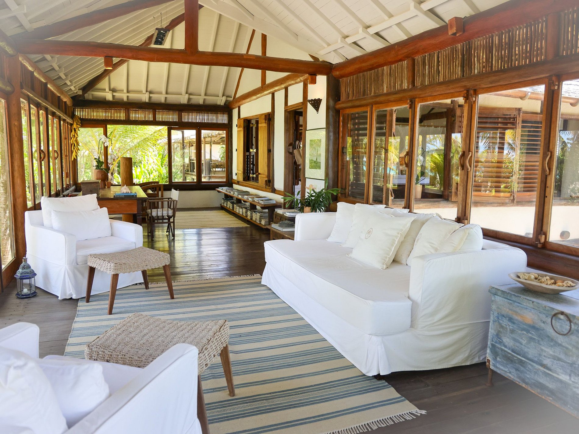 Convenientemente localizada a 2 km de Rio da Barra e a 4 km do Quadrado de Trancoso, esta casa notável maximiza o uso do espaço. A casa principal inclui: