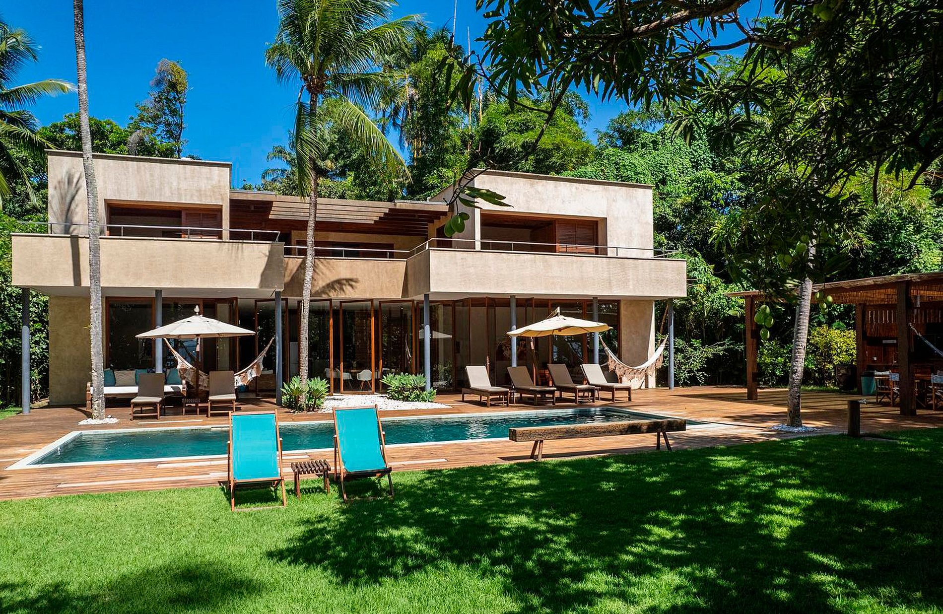 Esta residência contemporânea está situada em um autêntico paraíso natural, conectada diretamente à areia da praia, com uma fachada imponente de 47 metros.