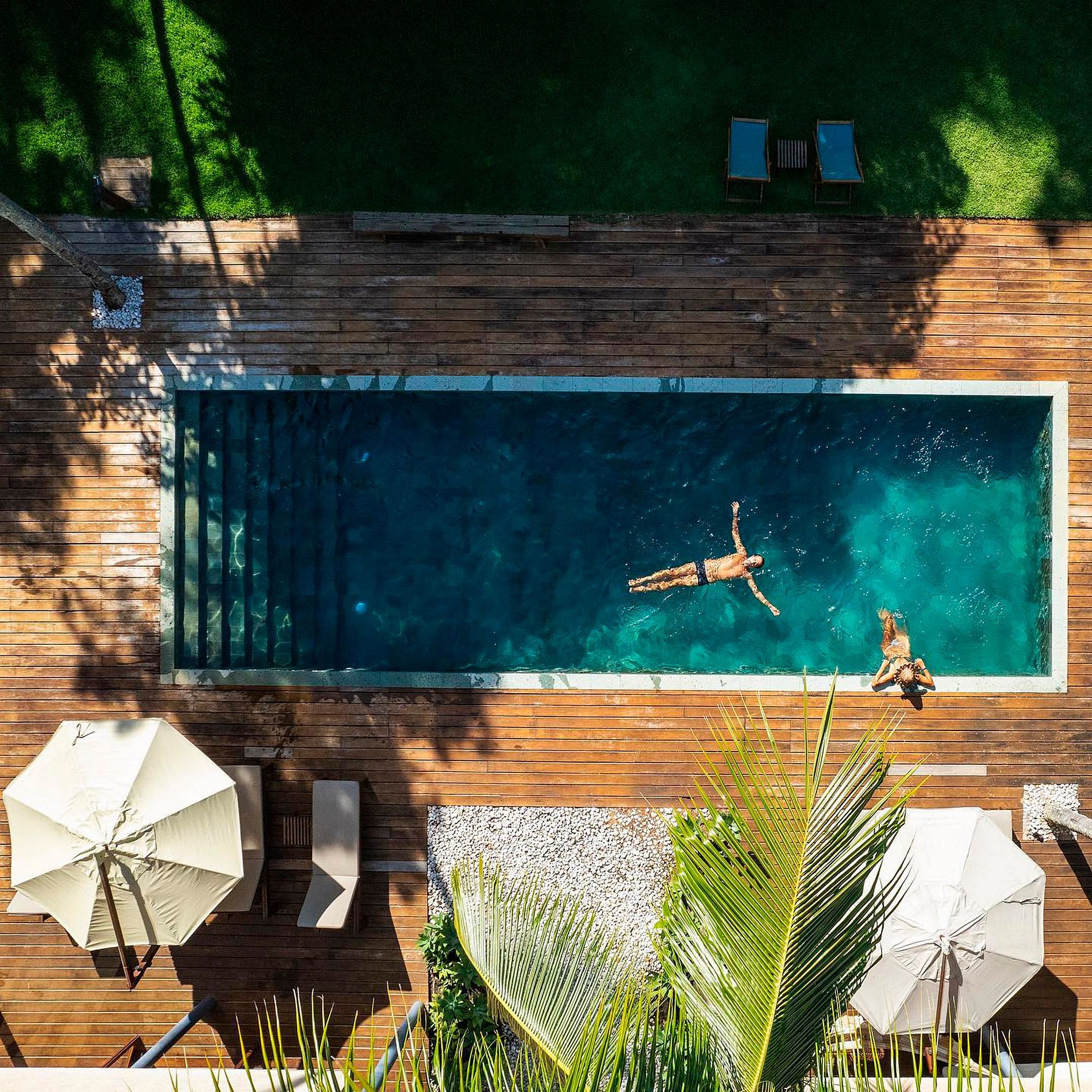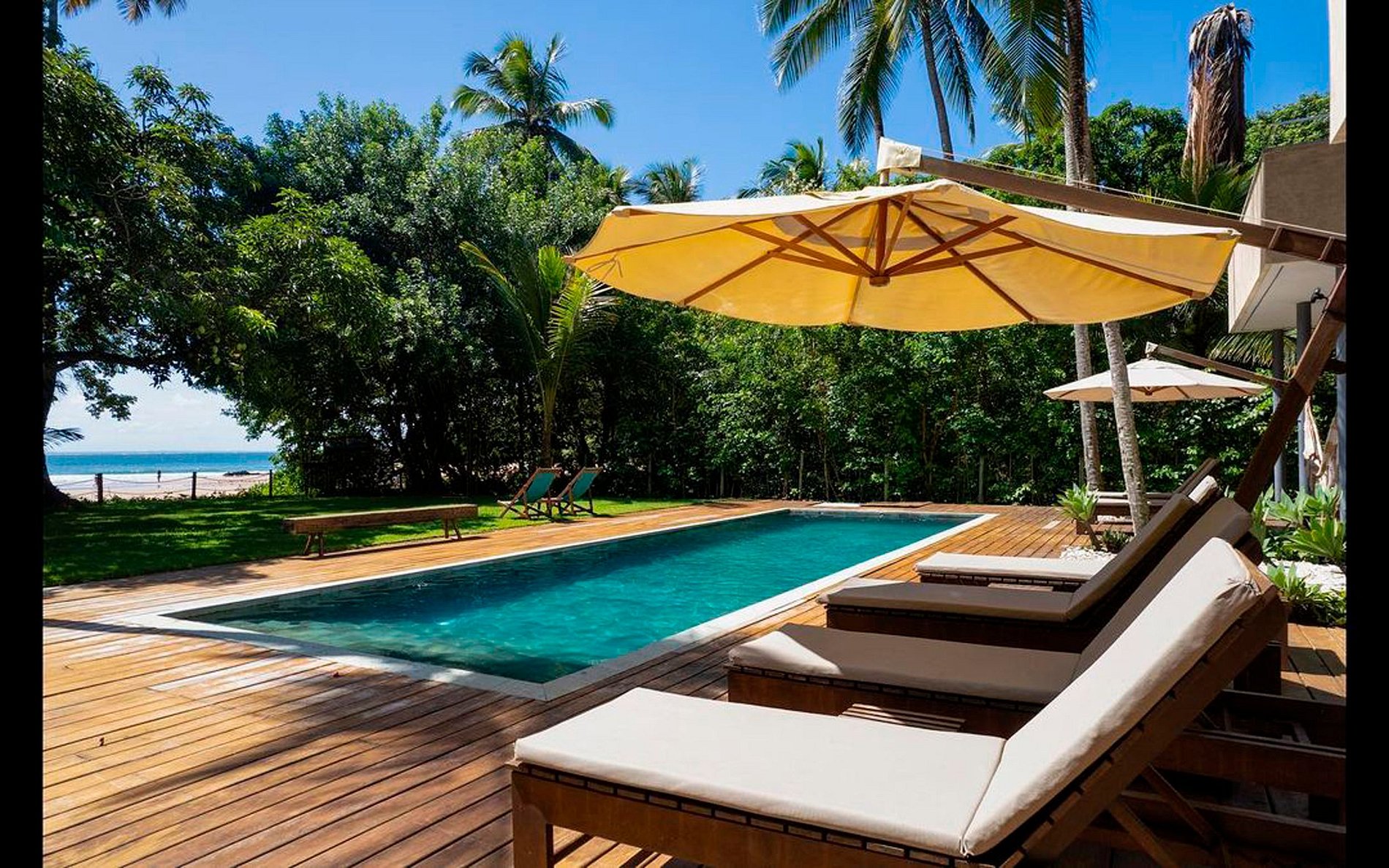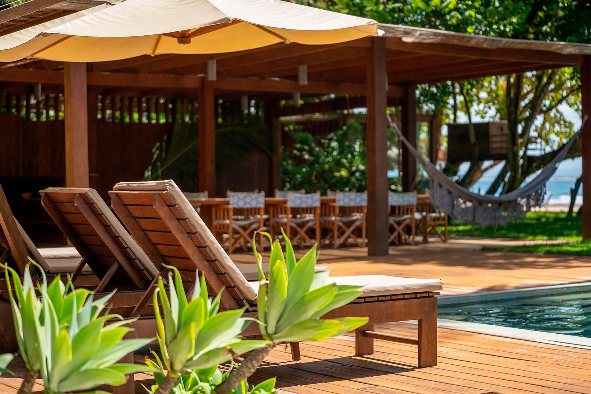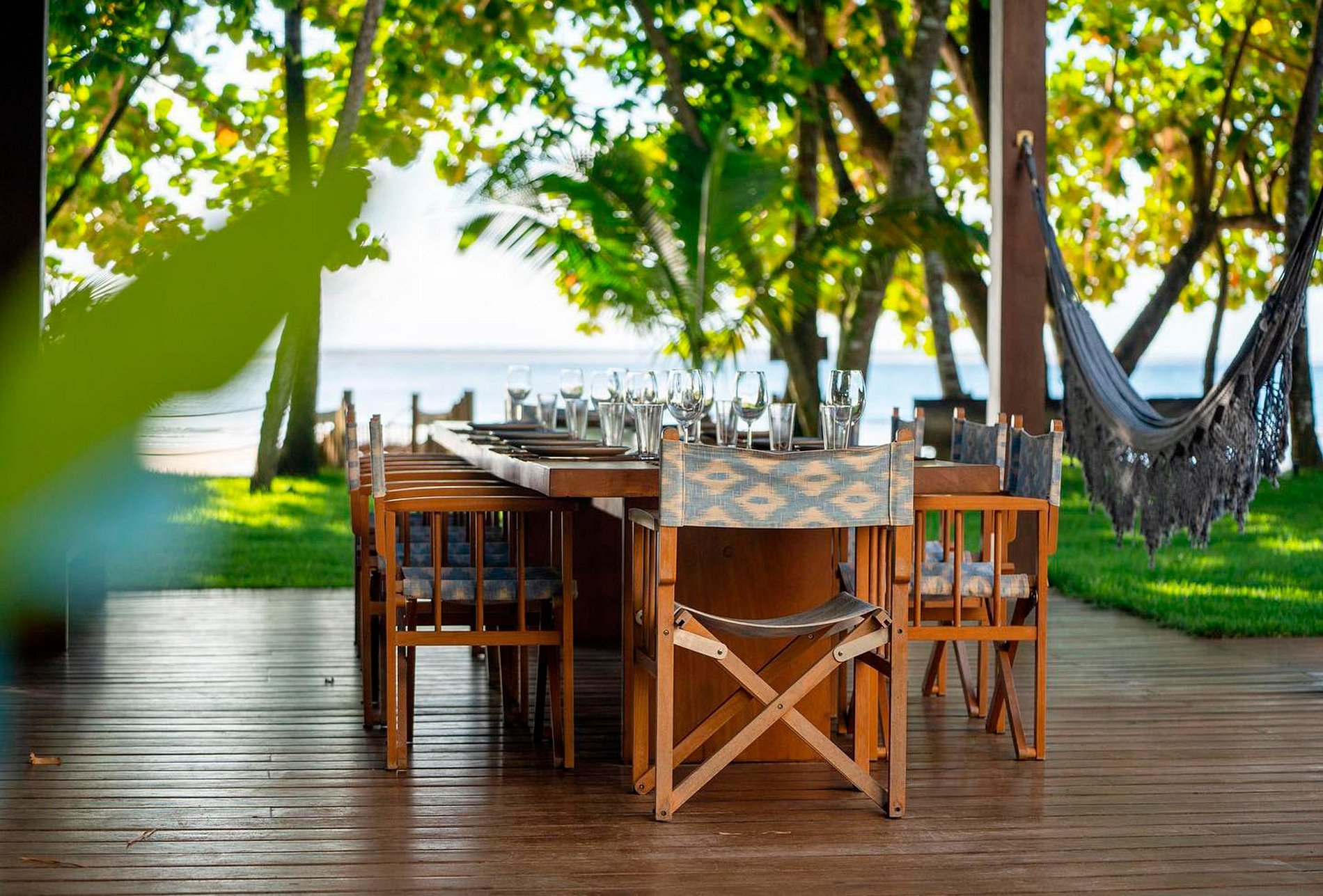 Suas cinco suítes acomodam confortavelmente até 10 pessoas, apresentando elementos de design exclusivos, arquitetura tropical destacada por madeira de alta qualidade, e uma disposição interna meticulosamente organizada.