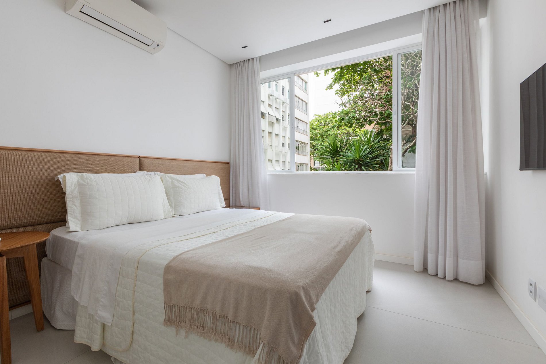 Apesar da localização na avenida mais famosa da cidade, o apartamento fica nos fundos do prédio, o que garante uma paz rara por ali. É silencioso, confortável e transmite uma sensação imediata de segurança e refúgio. Um lugar para viver Ipanema por inteiro, mas sem abrir mão da tranquilidade.