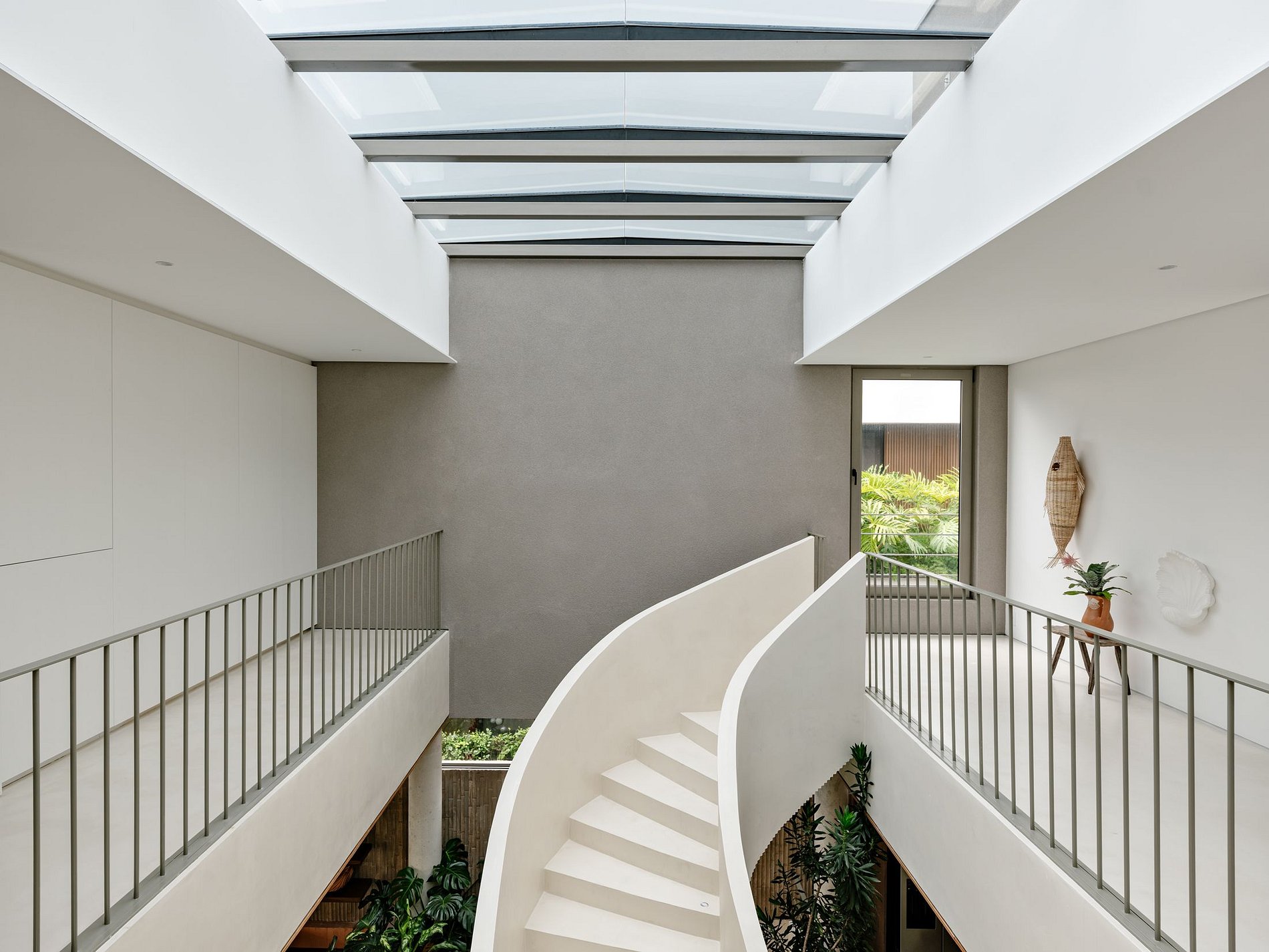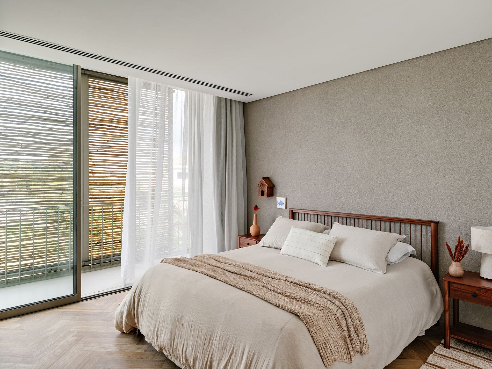 No andar superior, quatro suítes climatizadas proporcionam descanso absoluto. As duas suítes master oferecem vistas deslumbrantes do oceano, enquanto as suítes de hóspedes garantem tranquilidade e conforto. Um espaço multiuso entre os quartos funciona como sala de TV, área de trabalho ou refúgio para as crianças, adaptando-se às suas necessidades.