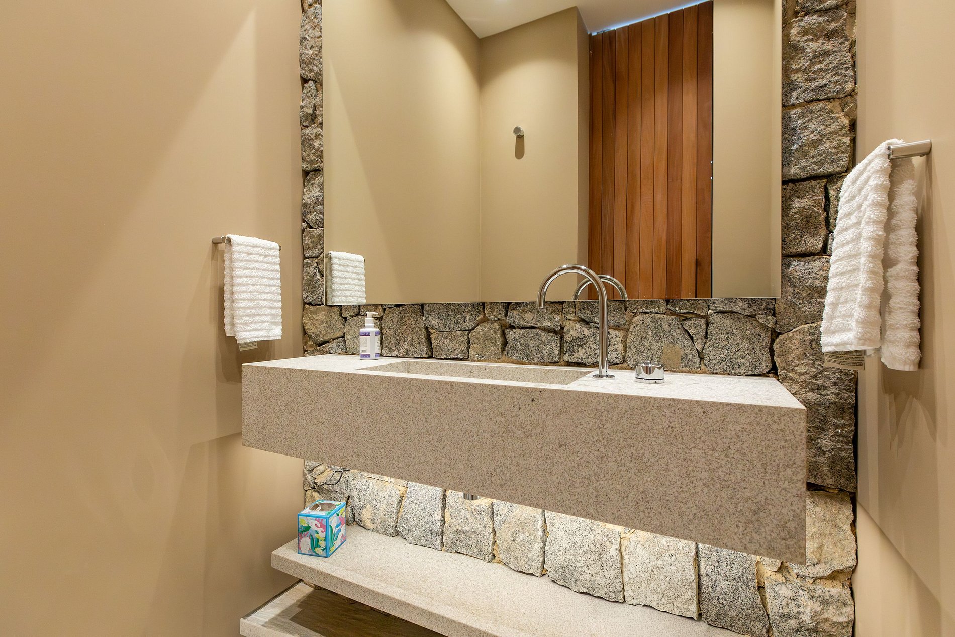A ala íntima conta com quatro suítes impecáveis: uma suíte master com cama king-size e três suítes adicionais equipadas com cama queen-size e uma cama de solteiro, solução perfeita para famílias. Todas são climatizadas e decoradas com atenção aos detalhes, garantindo privacidade e noites de descanso absoluto.