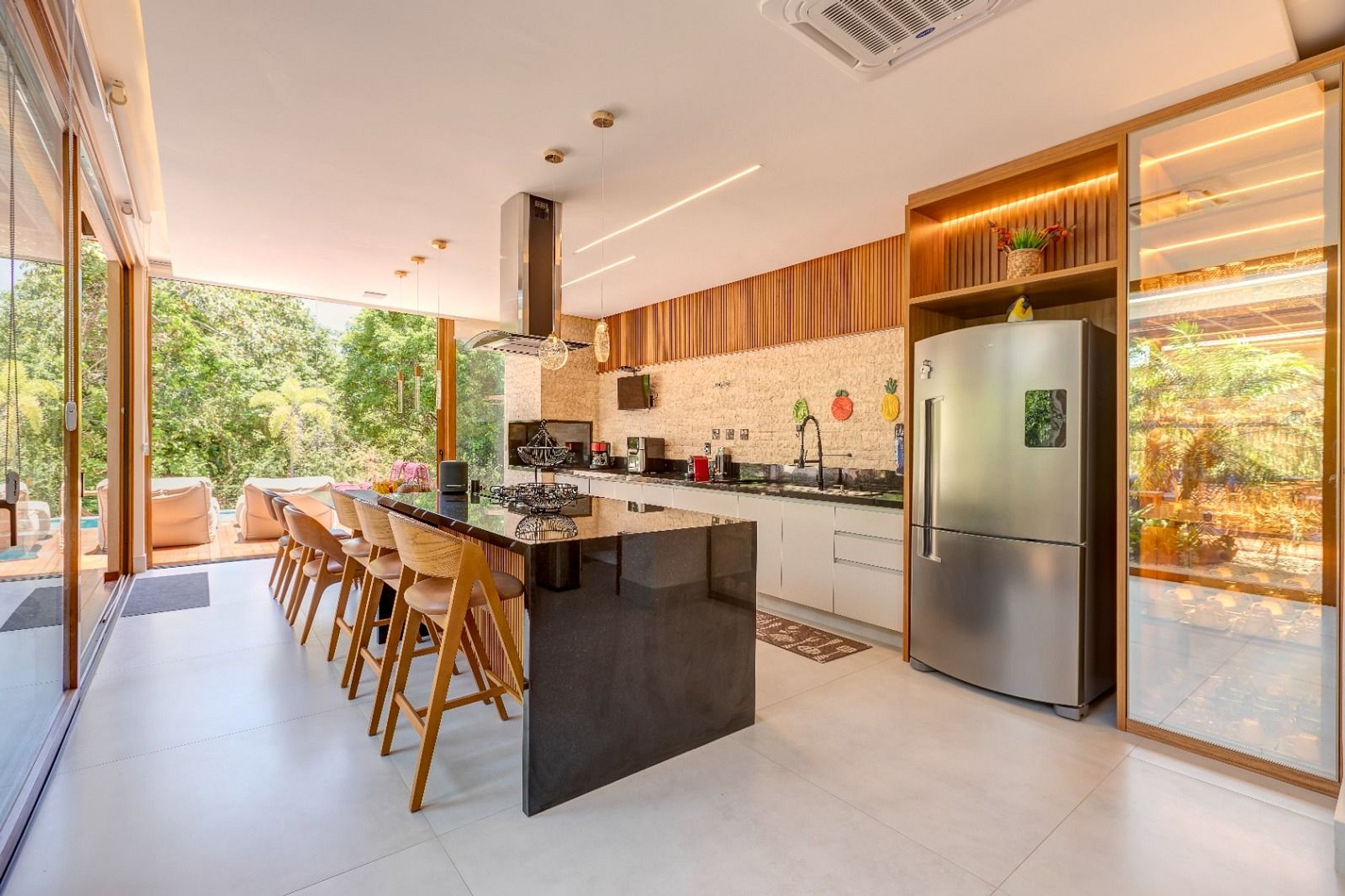 Imagine uma deslumbrante casa em Praia do Forte, na Bahia, situada em um exclusivo condomínio fechado. Esta residência combina luxo e conforto em perfeita harmonia tropical. Com uma arquitetura contemporânea que se integra à paisagem exuberante da região, a casa possui cinco suítes espaçosas, cada uma decorada com elegância e equipada com todas as comodidades modernas.