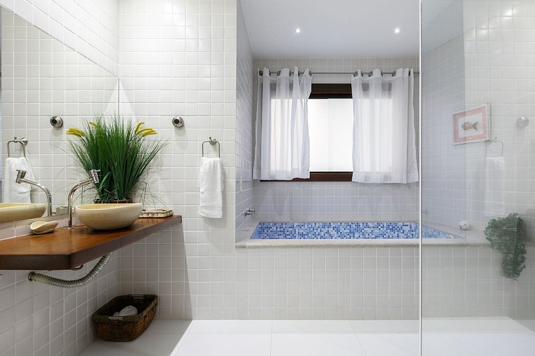 Todas completamente equipadas com camas king size, tv, ar condicionado e varandas de frente para o mar. A suíte master ainda contem uma relaxante banheira de hidromassagem, closet e um segundo banheiro. Três suítes ainda podem ter seus padrões de camas revertidos em camas de solteiro.