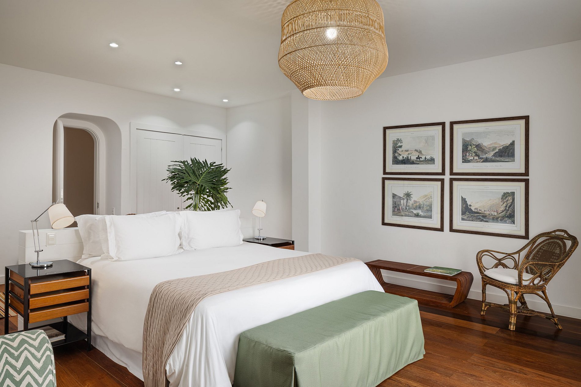 Composta por sete adoráveis suítes, sendo seis delas com camas king size e uma com duas camas de solteiro, acomoda confortavelmente até 14 pessoas. Da varanda de cada suíte, o hospede pode deleitar se com as vistas sublimes do Pão de Açúcar e da Baía de Guanabara.