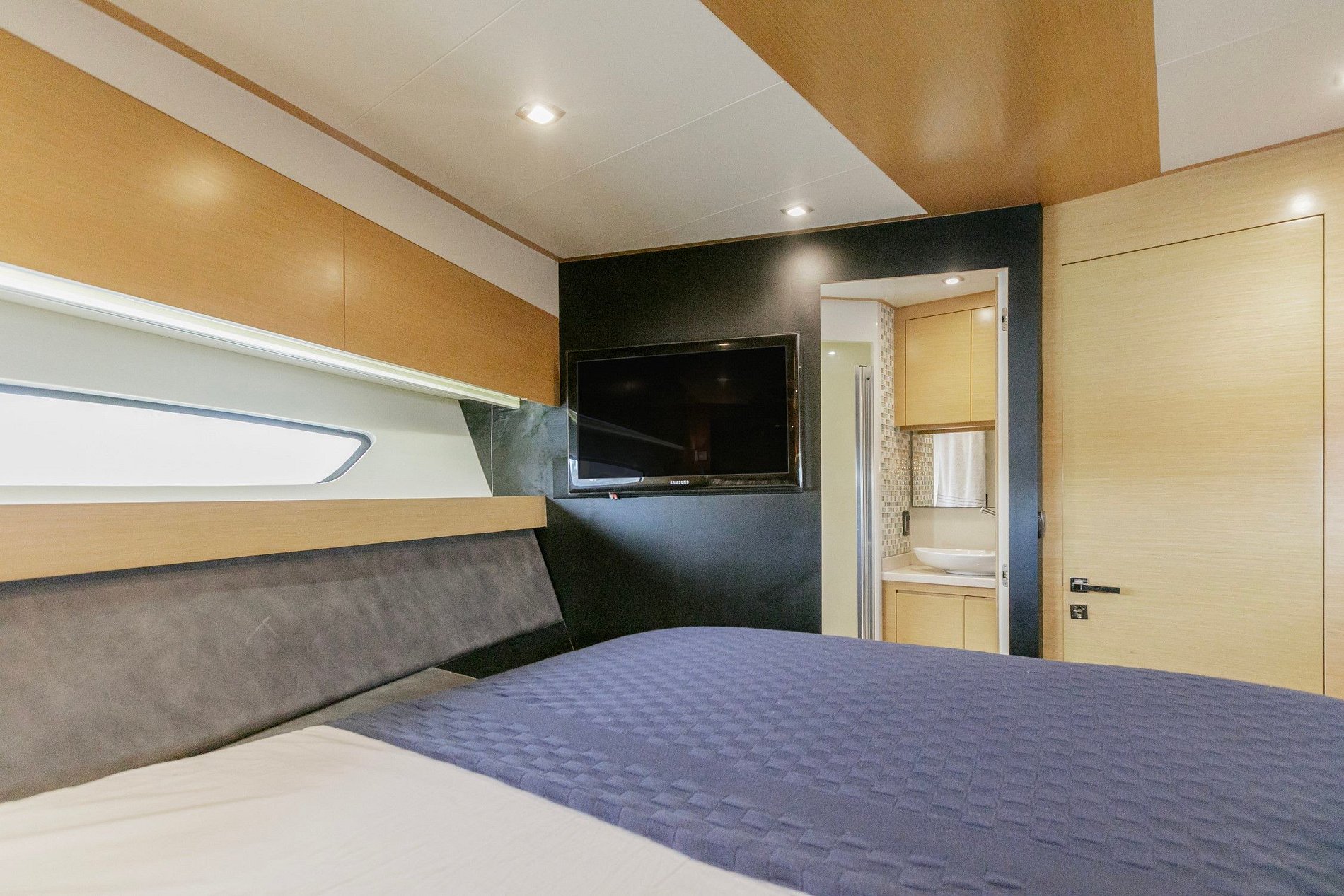 Com dois motores volvo 950 ips, três quartos sendo uma suíte, uma cabine de solteiro que também pode se transformar em casal, e uma cabine de proa com banheiro social, uma cozinha completa com duas geladeiras 2, mini freezer, um micro-ondas um fogão elétrico, sala espaçosa com dois sofás, armários nos quartos e na sala, água quente em todas as torneiras, gerador de 15, máquina de gelo, som Bluetooth, com automação independente em todos os ambientes, churrasqueira.