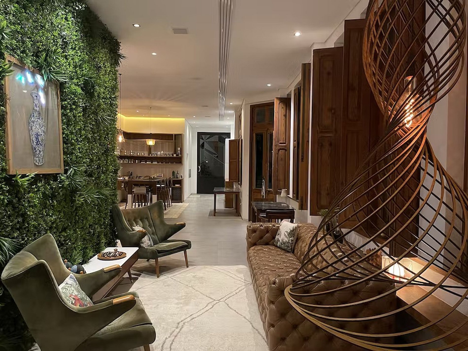 A decoração, opulenta e caprichada é complementada por obras de artistas de rua locais, entre elas, muitas peças premiadas. O salão colonial é equilibrado pelo design contemporâneo e cada uma de suas nove suítes, confortáveis e aconchegantes, possuem uma estética única e muita privacidade. Os cômodos se dividem em dois tipos: