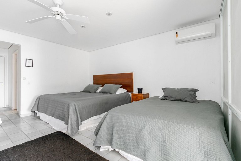 Por dentro, a mansão foi projetada para oferecer tudo o que é necessário para uma estadia excepcional. No primeiro andar, há uma ampla sala de estar, bar, sala de TV, sala de jantar, sala de jogos, duas cozinhas totalmente equipadas, um lavabo e uma suíte. No segundo andar, você encontrará a suíte master, quatro outras suítes e dois quartos adicionais que compartilham um banheiro externo.