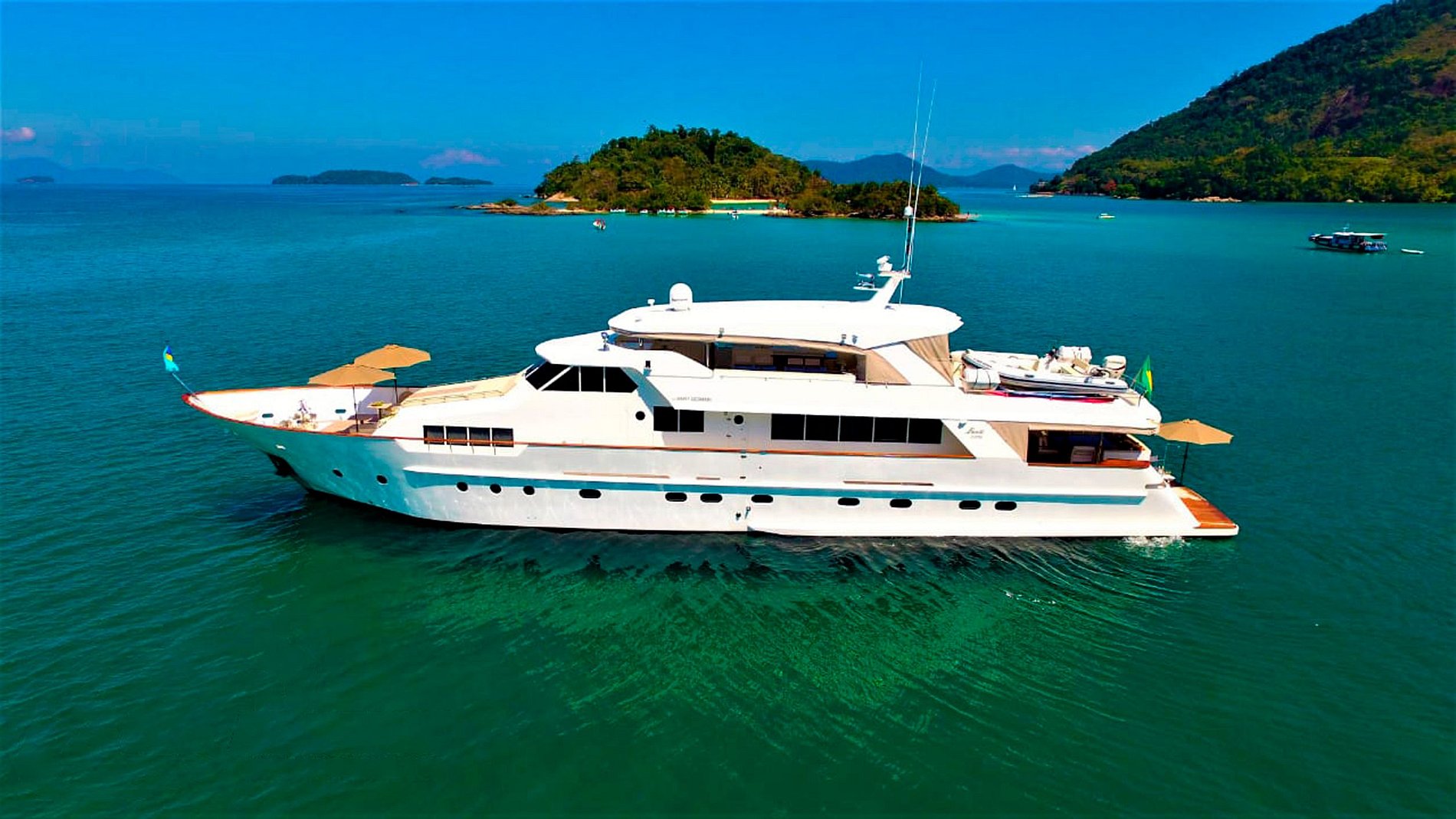 Bem-vindo a bordo deste magnífico iate de 106 pés, um iate a motor único na sua categoria. Novo, moderno, confortável e elegante em linhas clássicas, o iate provoca olhares de admiração em qualquer lugar. O barco oferece a você e seus convidados uma viagem inesquecível.