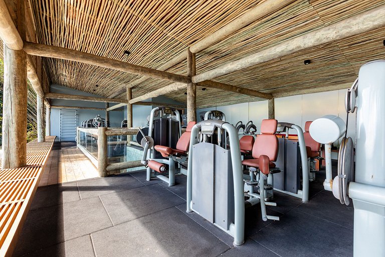 Além de uma deliciosa piscina, área gourmet com churrasqueira e forno de pizza à lenha, a casa abrange ainda, uma segunda piscina coberta e aquecida de 25 metros, duas saunas, sendo uma a seco e outra a vapor, uma moderna academia totalmente equipada e jacuzzi. Deitar-se e apreciar a brisa fresca do mar nas charmosas redes espreguiçadeiras flutuantes acima do mar é apenas mais um dos detalhes que tornam a experiência neste recanto tropical, inesquecível.