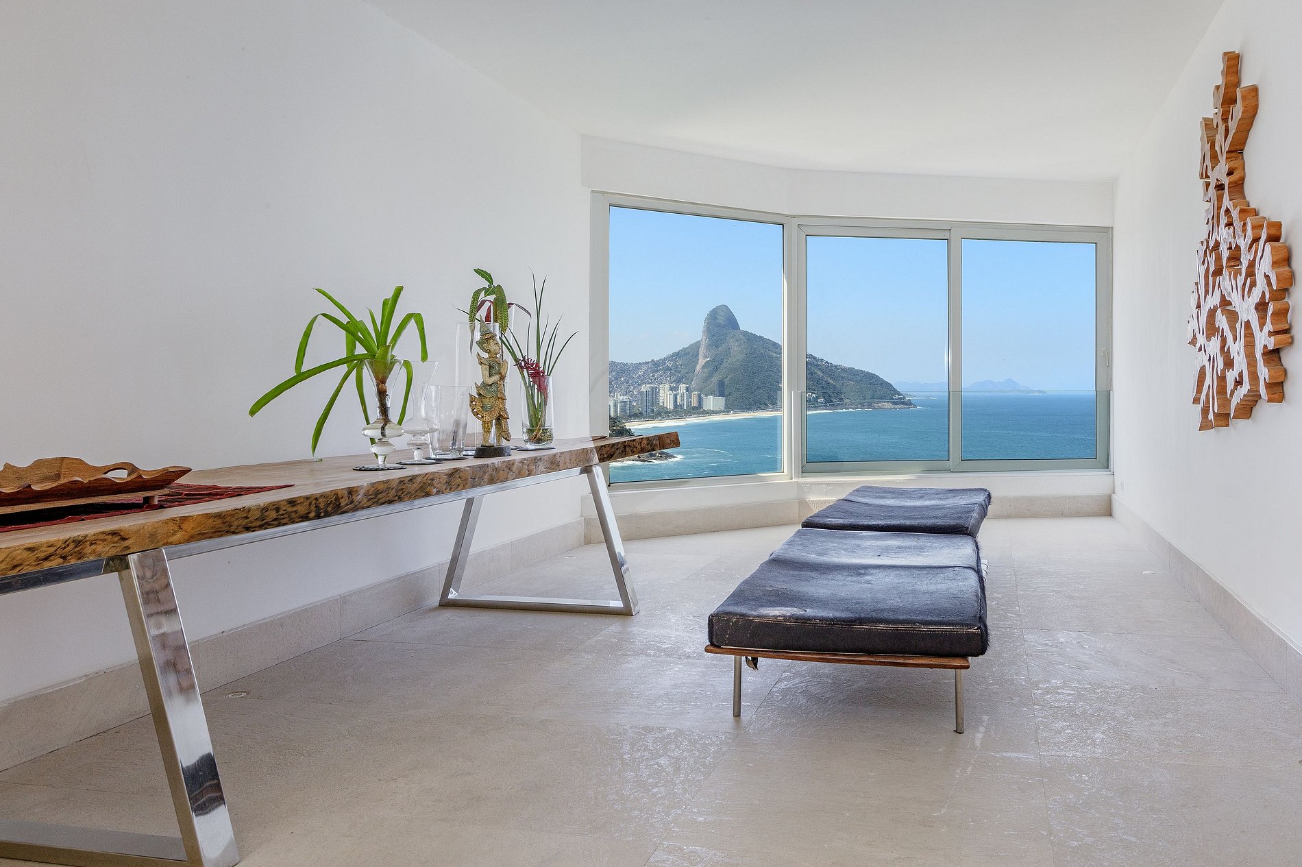 Construída em compromisso com a sustentabilidade ecológica, conjuga em sua decoração, o uso de materiais locais com o luxo e o design atemporal. Tudo muito bem enfatizado pela singularidade da arquitetura brasileira. De praticamente todos os pontos da casa, incluindo suas cinco suítes, a vista para o mar é inebriante. Ampla, luminosa e extremamente arejada, esse refúgio encantador fica bem pertinho da descolada praia da Joatinga, reduto de surfistas e amantes das belezas naturais cariocas. Esse conjunto torna a propriedade um paraíso perfeito para relaxar e curtir férias incomparáveis, seja em família ou entre amigos.