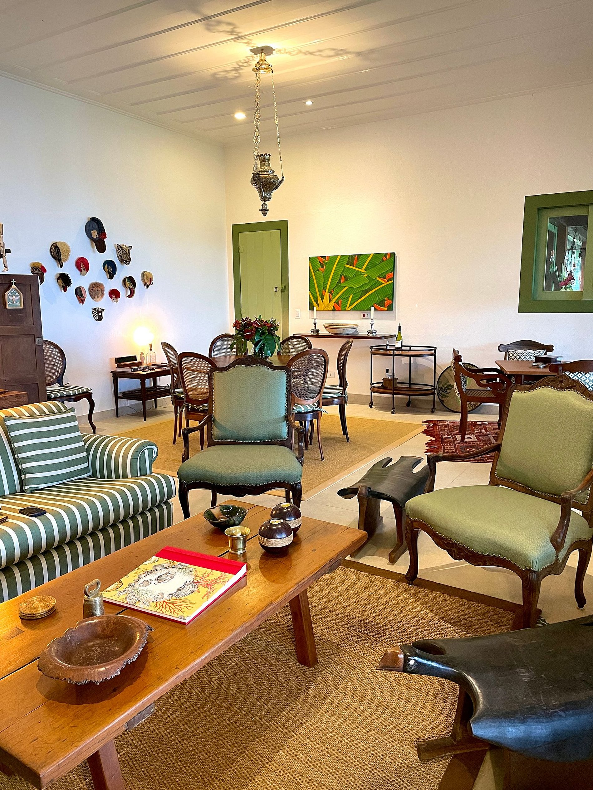 A Sede é o coração da propriedade, onde encontros mágicos acontecem. Ideal para famílias ou grupos de amigos, acomoda até 20 pessoas confortavelmente. Com uma ampla área para refeições, drinks e relaxamento, oferece um ambiente acolhedor e charmoso, perfeito para desfrutar da paz e harmonia do local. A propriedade também possui um gramado bem cuidado, uma prainha charmosa, pranchas de stand-up paddle, caiaques e um espelho d'água alimentado por fontes naturais, ideal para relaxar no fim da tarde.