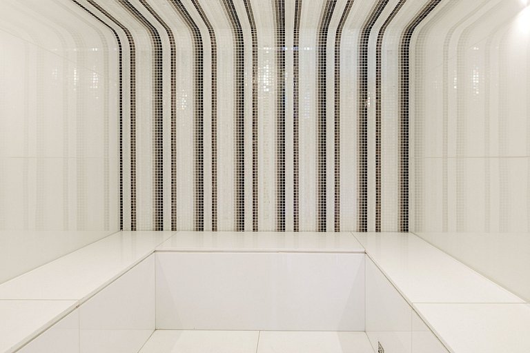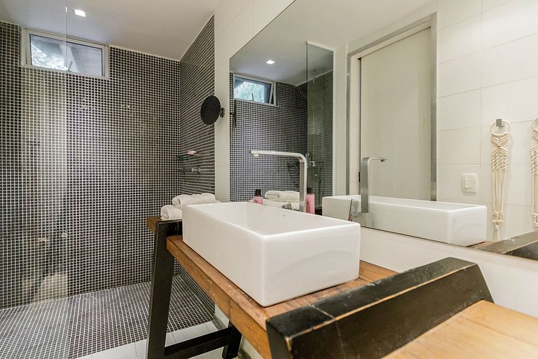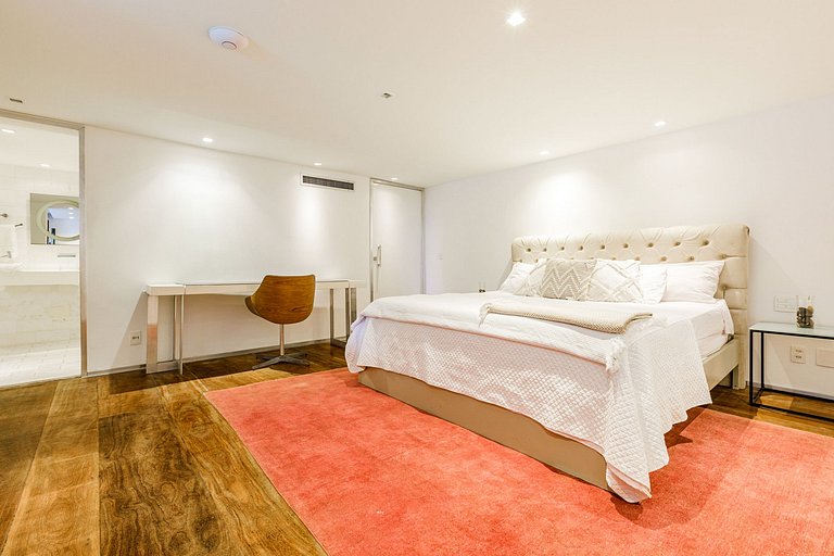 Em seus níveis inferiores, há além de um jardim vertical de beleza inigualável, cinco excelentes suítes, cada uma com uma vista mais sublime para o mar.