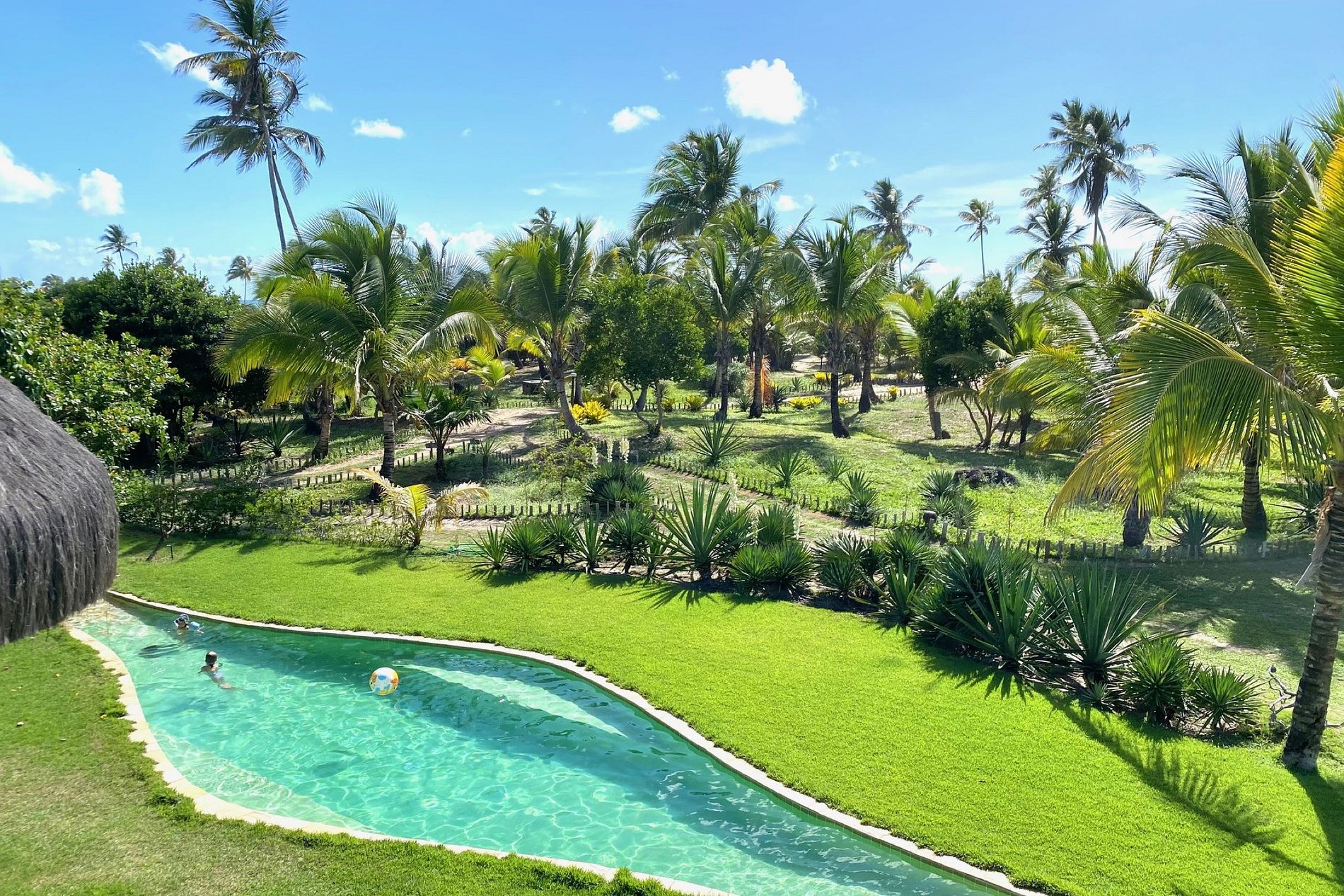 Cada uma das quatro casas oferece vistas panorâmicas do oceano e/ou do lago, abrangendo um trecho notável de 1,8 km que atravessa a Península de Marau. A propriedade começa com 100 metros de frente para o mar, passa por uma extremidade da Lagoa do Cassange e termina nos manguezais da Baía de Camamu. Com mais de 14 hectares de terra e uma área interna que ultrapassa 1.000m², há amplo espaço para realizar eventos ou para expansão.