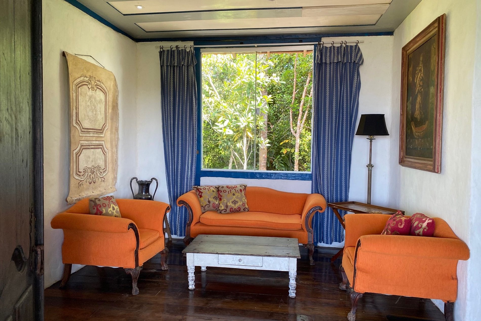 Casa Maison: 3 quartos (2 suítes balinesas no térreo e 1 suíte king especial no 2º andar com banheiro de luxo e jacuzzi). Inclui um grande salão com mesa de jantar para 15 pessoas, biblioteca, TV, 3 varandas, cozinha gourmet eat-in, e uma varanda coberta para refeições com espaço para 15 pessoas. Piscina privada.