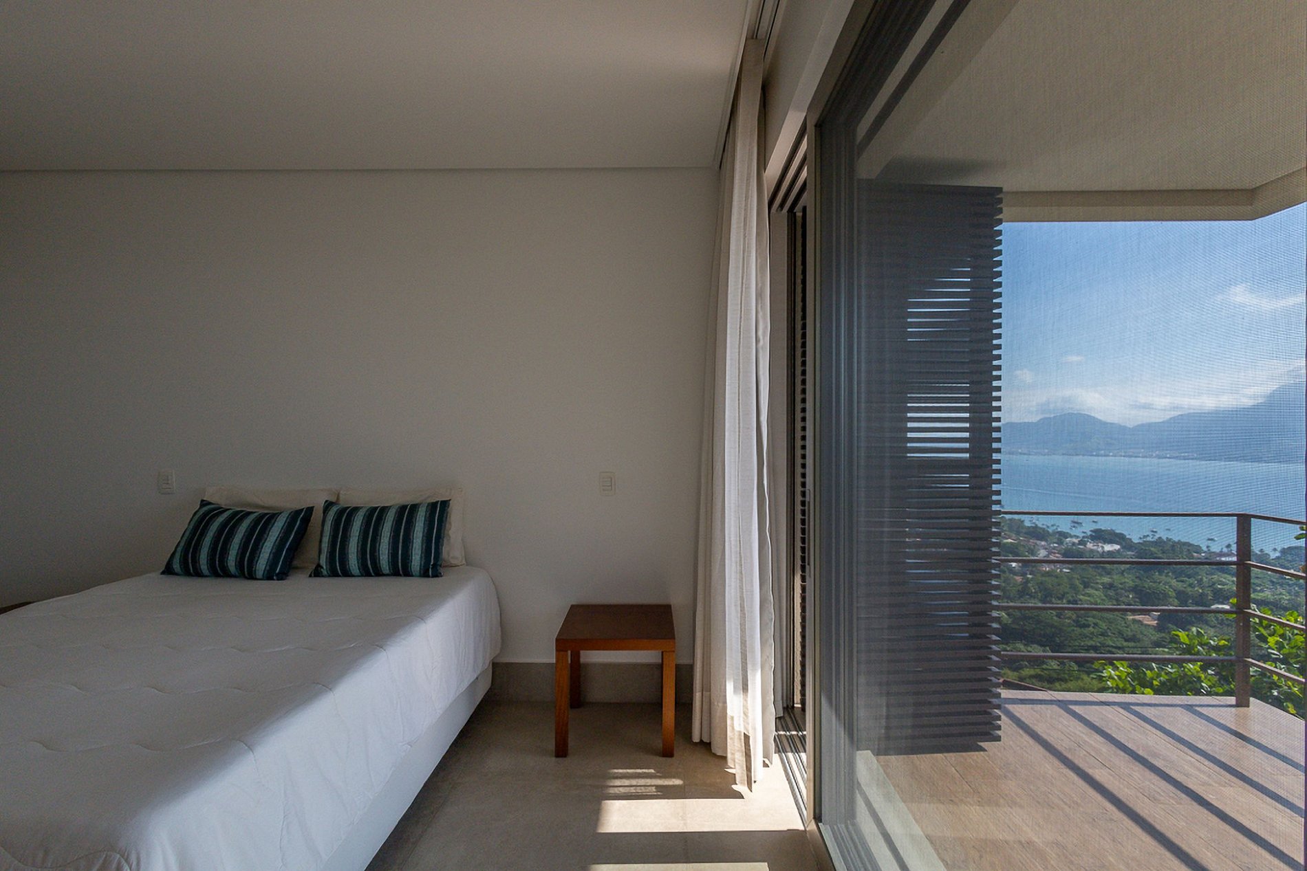 Todos os quartos oferecem privacidade e uma decoração que complementa a beleza natural ao redor.