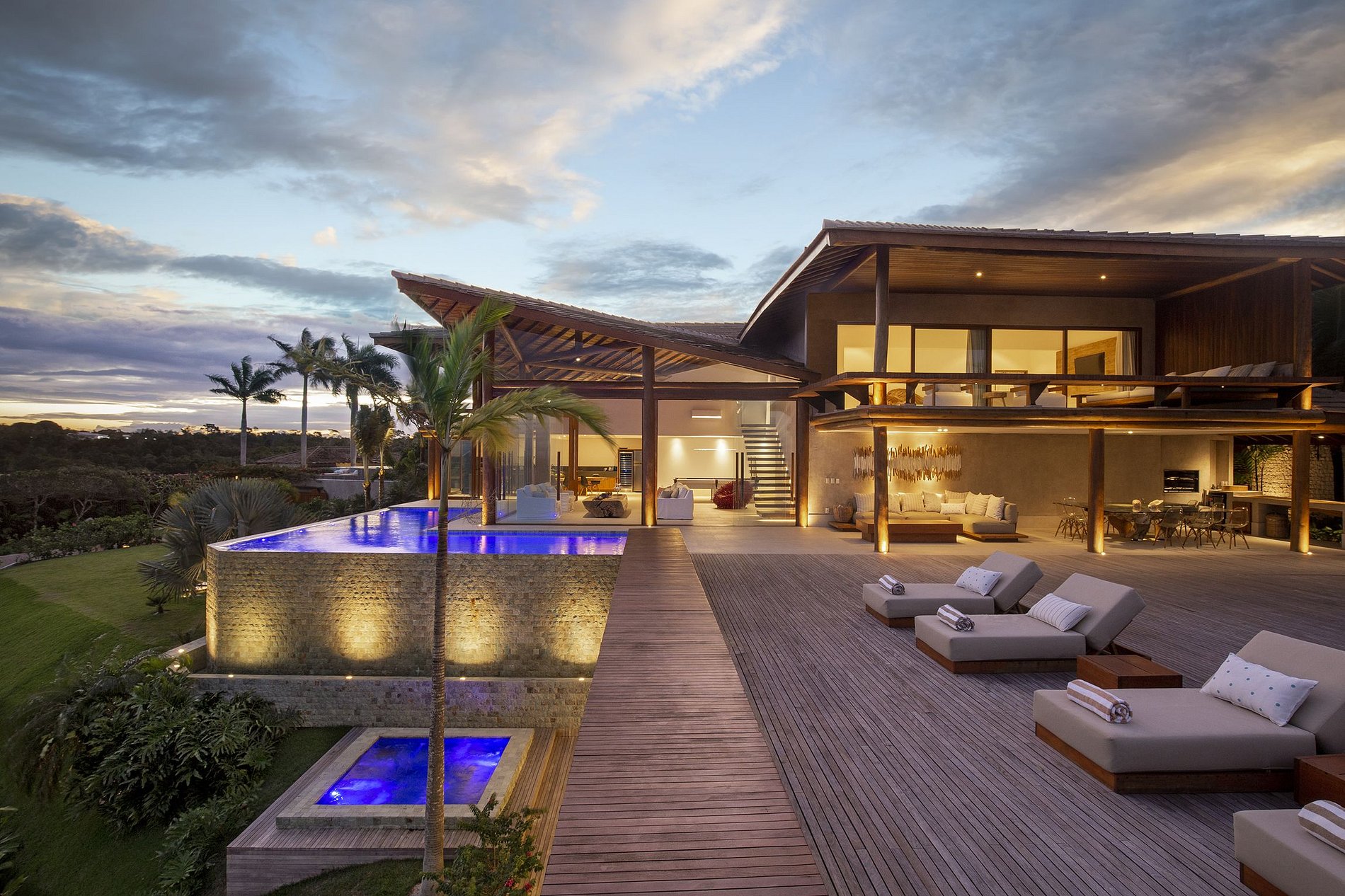 Do alto de uma falésia, a vila impressiona. O mar, a natureza e a brisa baiana embalam cada canto do projeto arquitetônico suntuoso e imponente. A atmosfera praiana ganha sofisticação com a arquitetura contemporânea e os acabamentos de excelente qualidade. Na decoração, há forte presença do contraste do branco com a madeira em suas mais variadas apresentações. Os imensos janelões de vidro que circundam a casa permitem que a luz e a paisagem cinematográfica emoldurem todos os ambientes. E quando a noite cai, o projeto de light design torna o ambiente simplesmente mágico.
