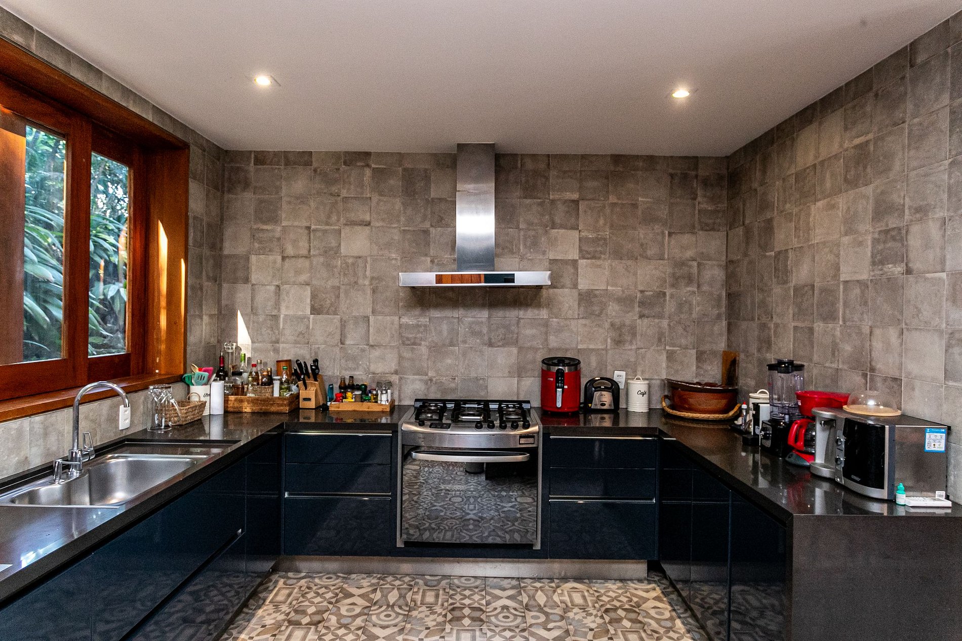 Com capacidade para acomodar até oito pessoas, a residência dispõe de quatro suítes amplas, todas equipadas com banheiros privativos, assegurando um nível elevado de conforto e privacidade. As suítes apresentam um design contemporâneo, com atenção a acabamentos de alta qualidade que criam uma atmosfera acolhedora e propícia ao relaxamento. A configuração dos espaços comuns é marcada pela integração da ampla sala de estar com a sala de jantar, criando ambientes versáteis, apropriados para convívio social e lazer. A cozinha, inteiramente equipada com eletrodomésticos de última geração e utensílios de alto padrão, oferece uma infraestrutura que atende às demandas de hóspedes que desejam usufruir de experiências gastronômicas sofisticadas em um ambiente funcional.