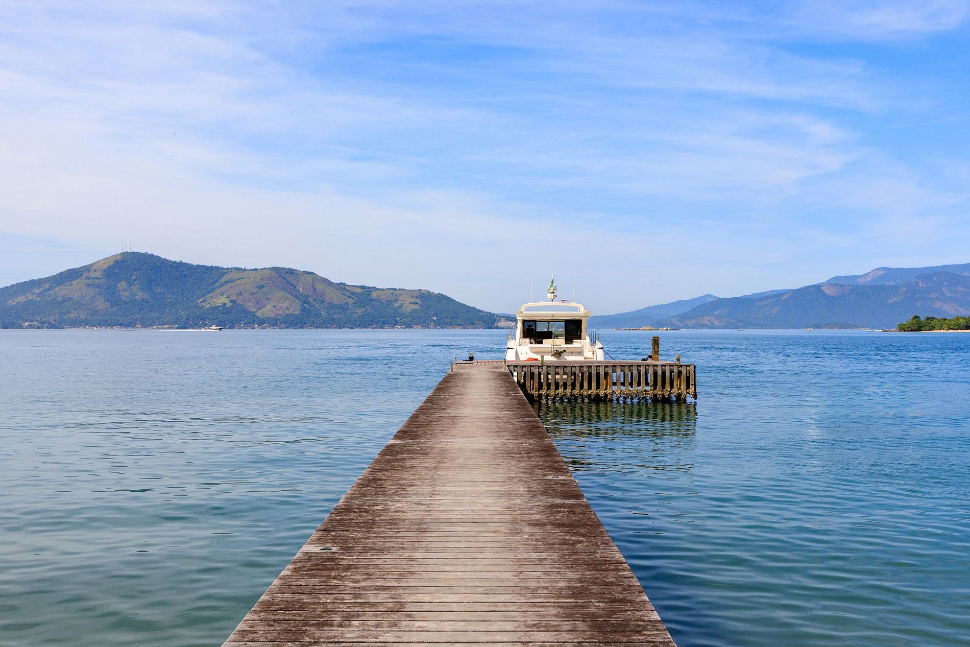 Os espaços de convivência estão no centro da casa, integrando os ambiente interno e externo e promovendo uma atmosfera harmoniosa entre os que aqui confraternizam e a natureza. Em frente à casa há um píer privado que dá acesso ao iate da casa, onde um comandante e um marinheiro se encontram à disposição.