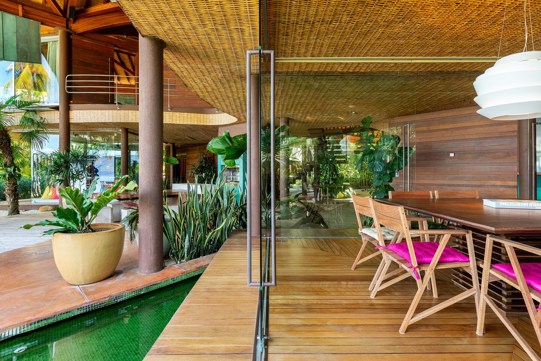 Inspirados na arquitetura tradicional das ocas indígenas brasileiras, os arquitetos Mareines e Patalano projetaram a gloriosa Casa Folha. Pensada para causar baixo impacto ambiental e promover uma integração fusional entre a edificação e a natureza, a casa que se tornou um ícone, subverte conceitos habituais e rompe com o lugar comum costumeiro das casas de praia como, por exemplo, quem poderia imaginar, uma churrasqueira exatamente no centro da sala?
