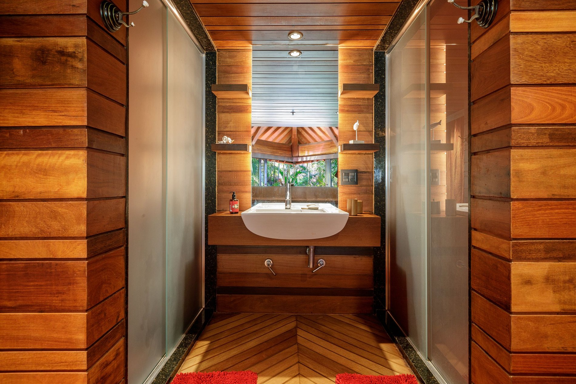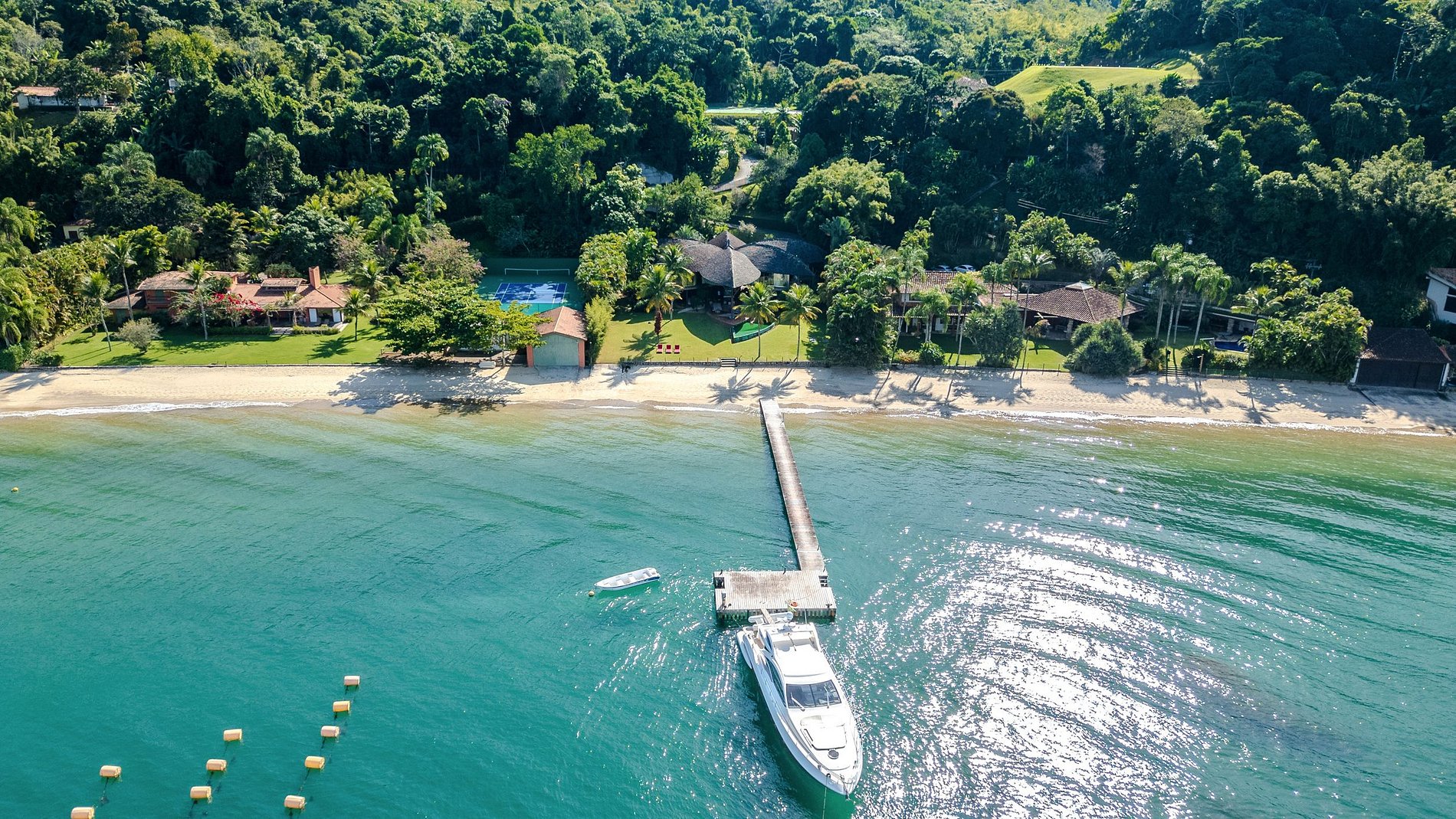 Os espaços de convivência estão no centro da casa, integrando os ambiente interno e externo e promovendo uma atmosfera harmoniosa entre os que aqui confraternizam e a natureza. Em frente à casa há um píer privado que dá acesso ao iate da casa, onde um comandante e um marinheiro se encontram à disposição.