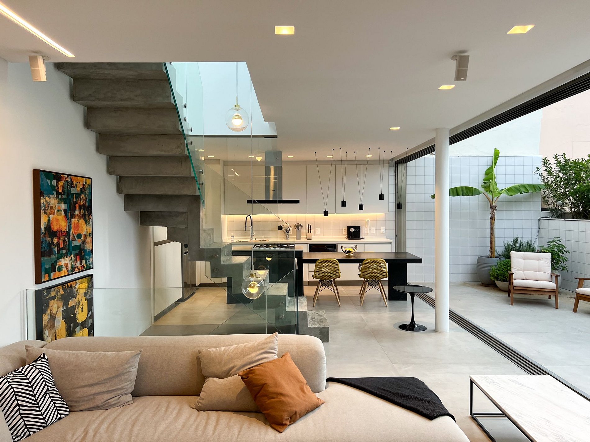 No segundo pavimento, de 94m2 encontramos o grande living, a cozinha aberta com ilha central e um terraço de 40 m2.