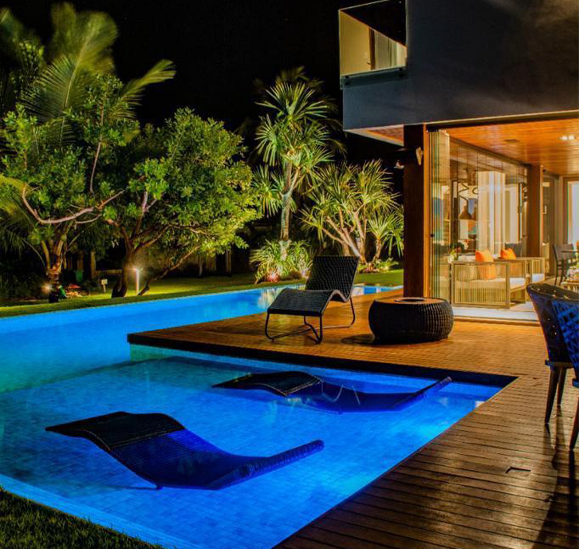 A área externa é um verdadeiro paraíso, com uma piscina privativa que convida ao relaxamento e uma área gourmet equipada, perfeita para momentos de confraternização. A integração dos ambientes proporciona uma experiência única de lazer e bem-estar, com total privacidade e exclusividade.