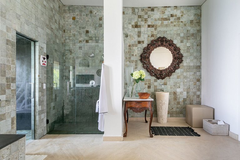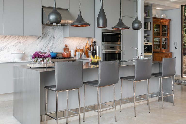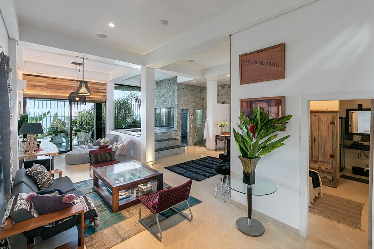 Entre e você será recebido pelo mobiliário luxuoso que certamente impressionará até os hóspedes mais exigentes. Móveis finos e peças de decoração exclusivas são uma prova da atenção aos detalhes que fizeram desta casa um verdadeiro refúgio de opulência e conforto.