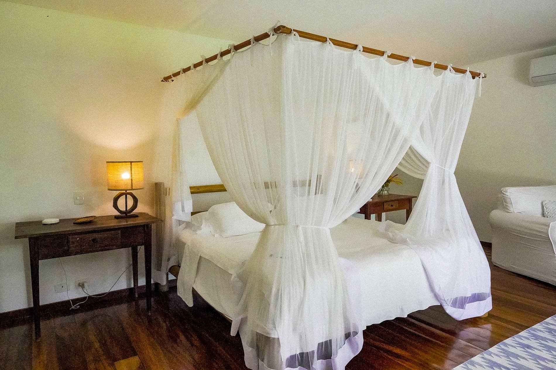 Todas as suas cinco amplas suítes possuem vista para o mar e estão equipadas com Ar-condicionado e closet, acomodando confortavelmente até 10 pessoas.