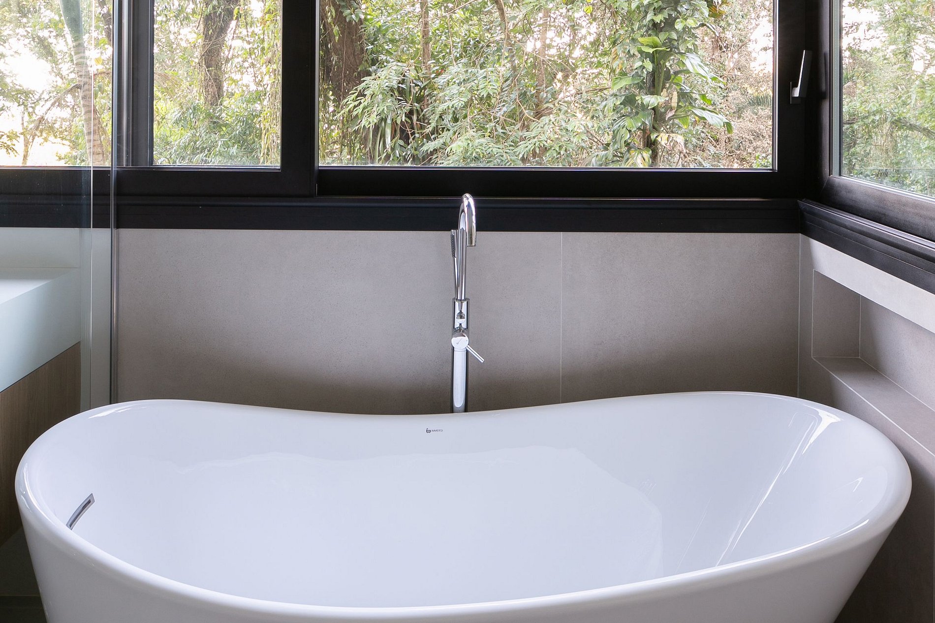 Localizada em um região tranquila e segura do Guarujá, esta casa é um verdadeiro refúgio de tranquilidade. Com uma arquitetura moderna e arrojada, a casa se destaca em meio ao verdejante entorno natural, criando um contraste harmonioso e agradável aos olhos.